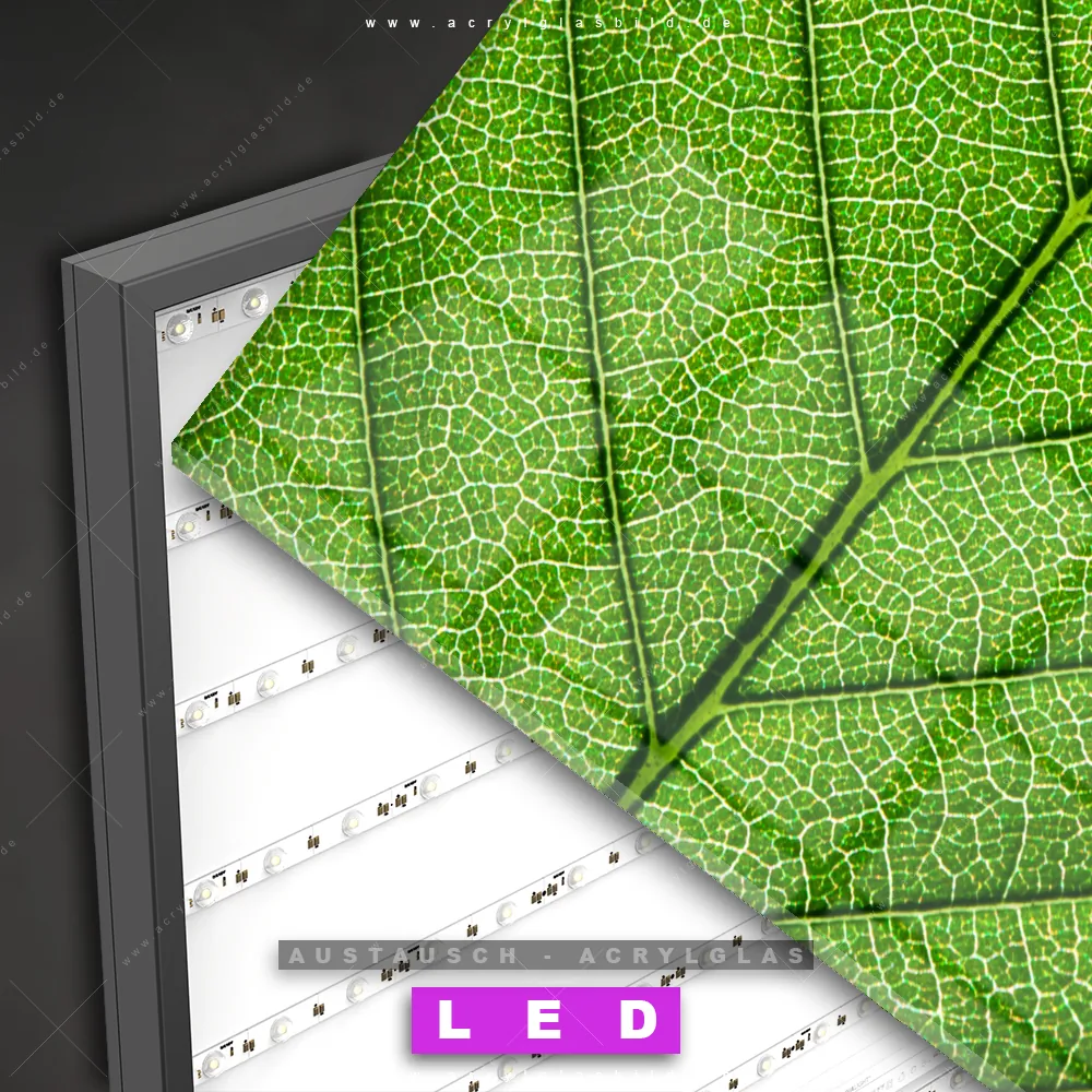 Begriffe wie Natur, Wald, Baum, Blatt, Botanik, Pflanzen haben dich auf der Suche nach deinem neuen Austausch-Acrylglasbild inspiriert? Dann sollte das Wechsel-Acrylglasbild Laubblätter Blattadern für dein bereits vorhandenes LED Acrylglasbild Canvalight® DIA den Weg zu dir finden.