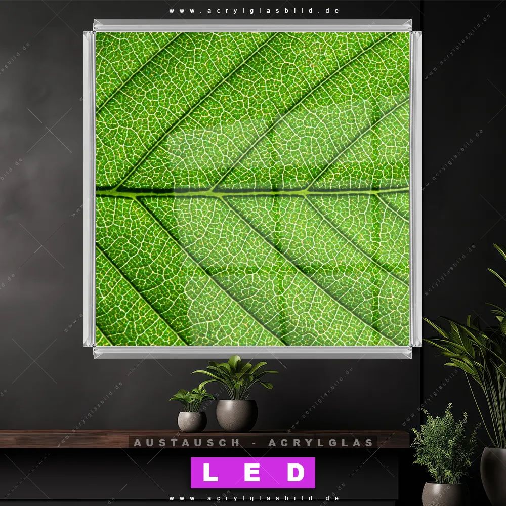 Wechsel-Acrylglas Canvalight® DIA | Grüne Blattadern | Quadrat