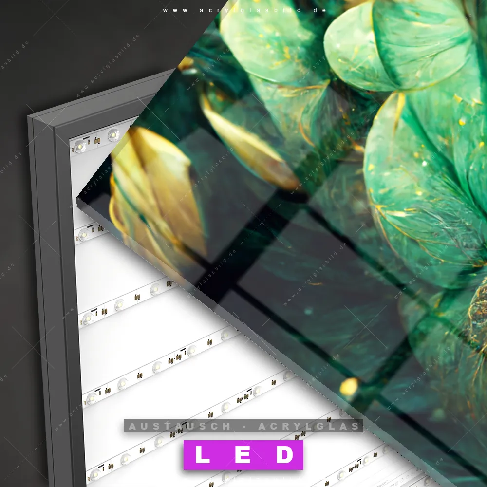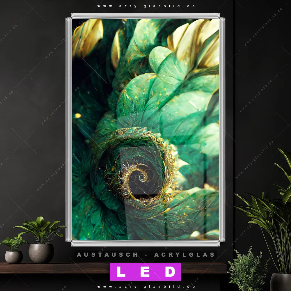 Wechsel-Acrylglas Canvalight® DIA | Grüne Spiralblätter | Hochformat