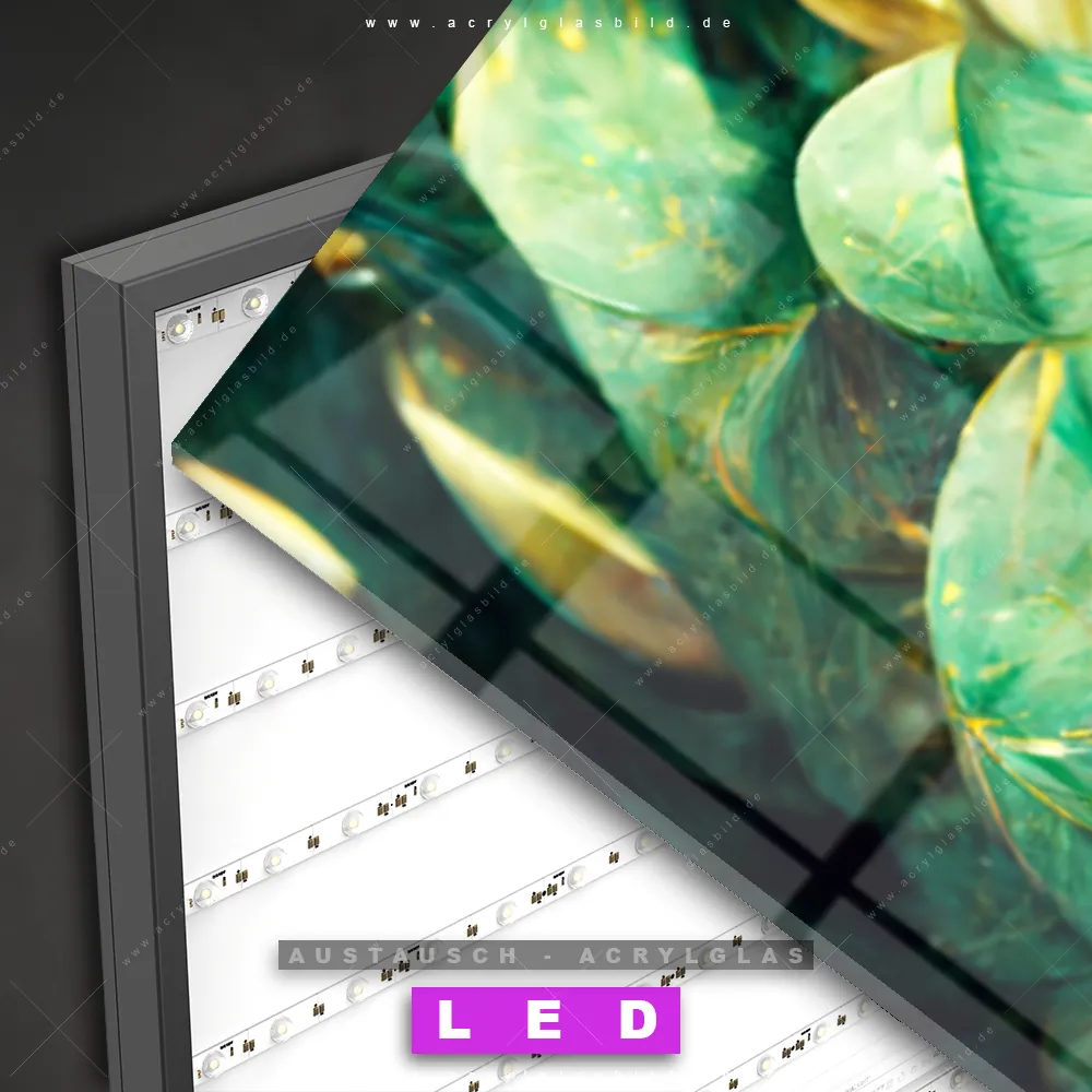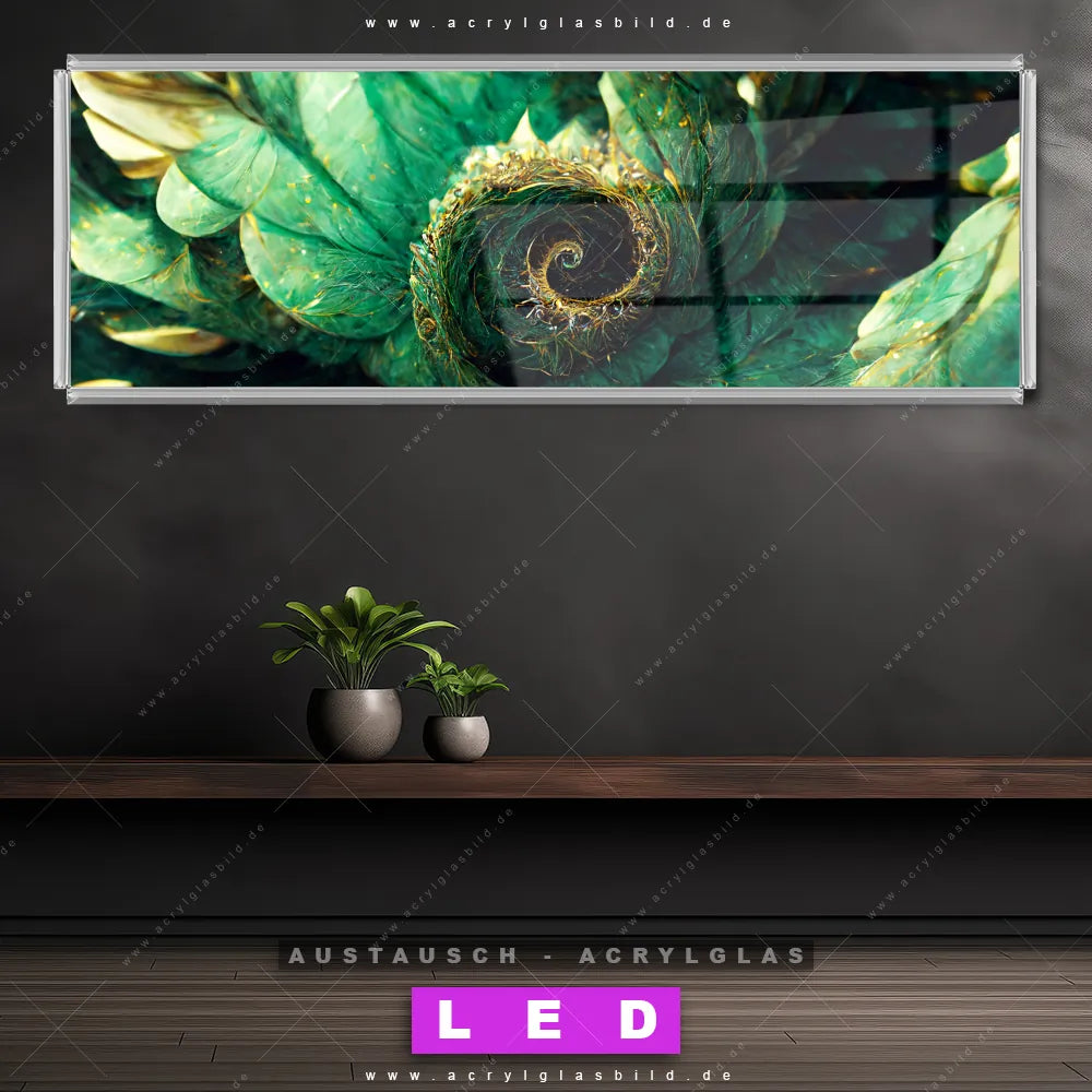 Wechsel-Acrylglas Canvalight® DIA | Grüne Spiralblätter | Panorama