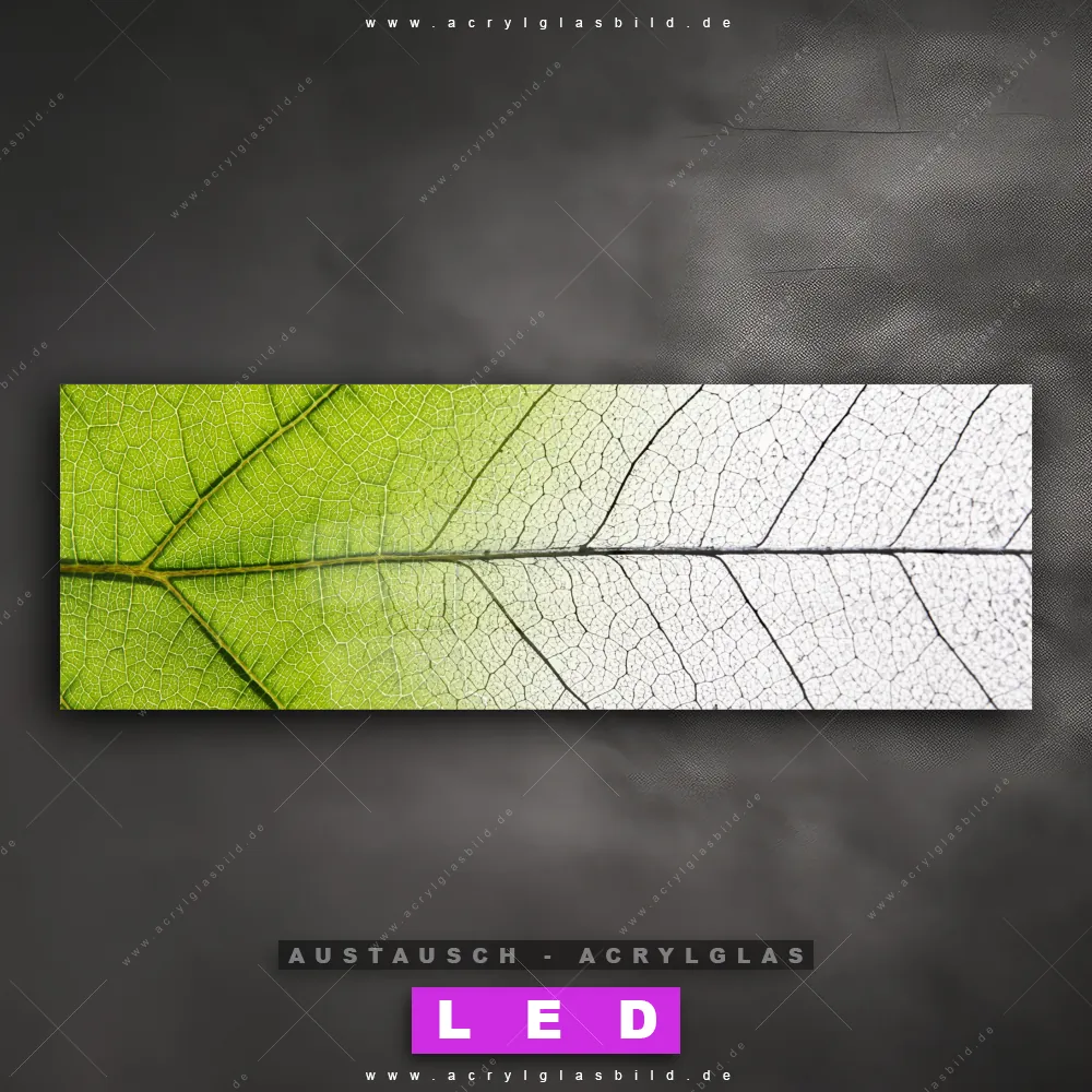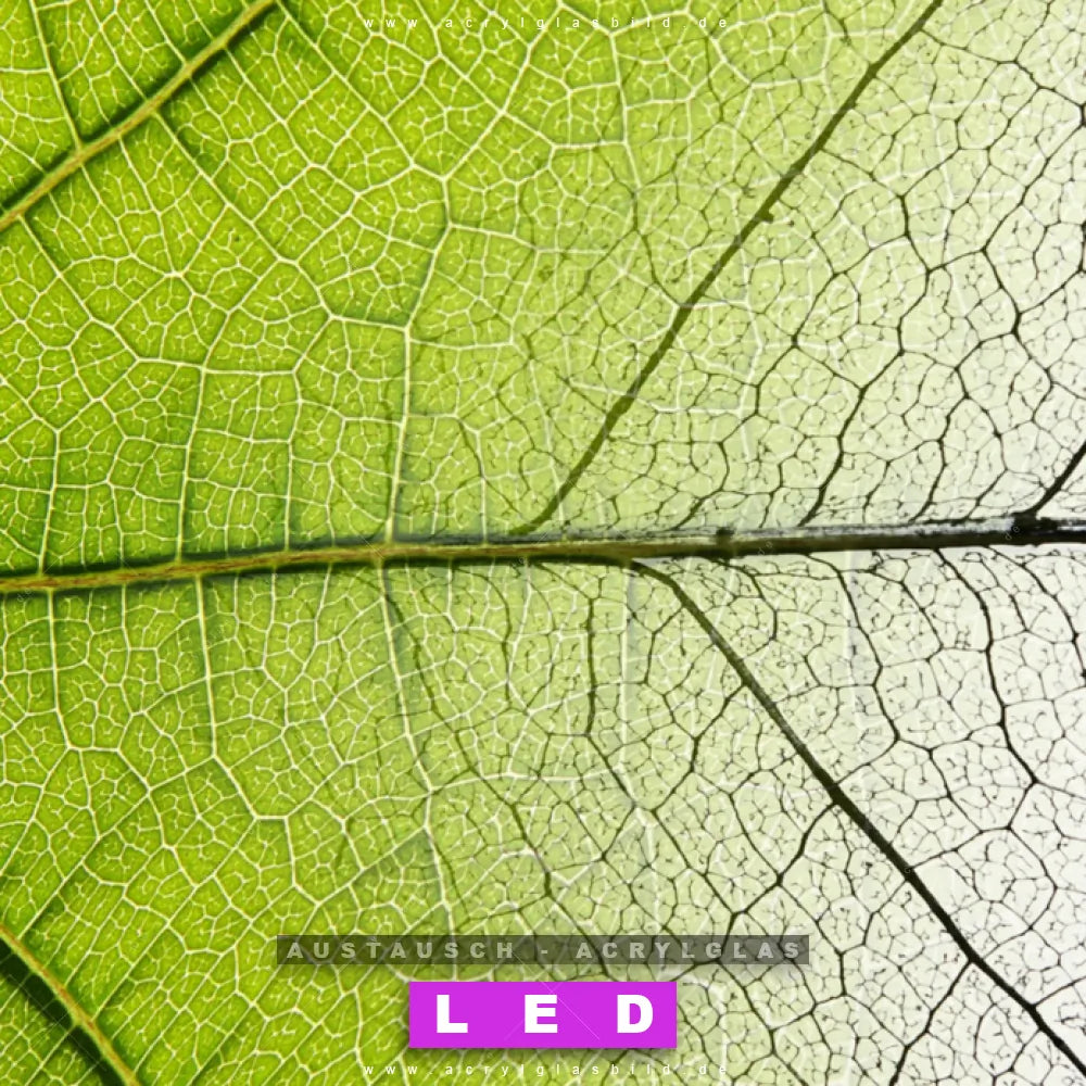 Begriffe wie Blätter, Pflanze, Natur, Nahaufnahme, Vogelperspektive, Draufsicht, Blatt, Makro, Close Up, Blattadern haben dich auf der Suche nach deinem neuen Austausch-Acrylglasbild inspiriert? Dann sollte das Wechsel-Acrylglasbild Laubblatt in weiß/grün für dein bereits vorhandenes LED Acrylglasbild Canvalight® DIA den Weg zu dir finden.