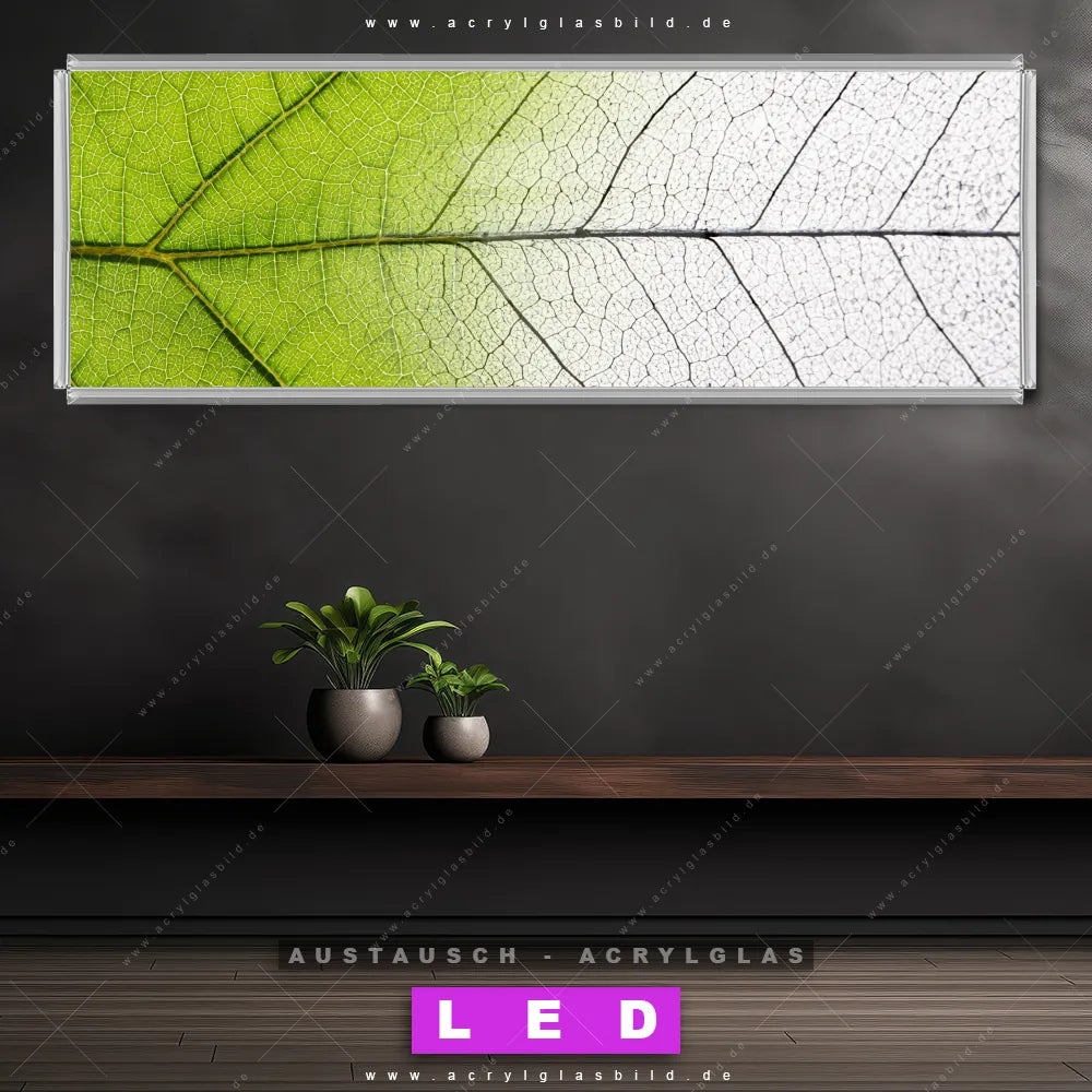 Wechsel-Acrylglas Canvalight® DIA | Grünes Blatt | Panorama