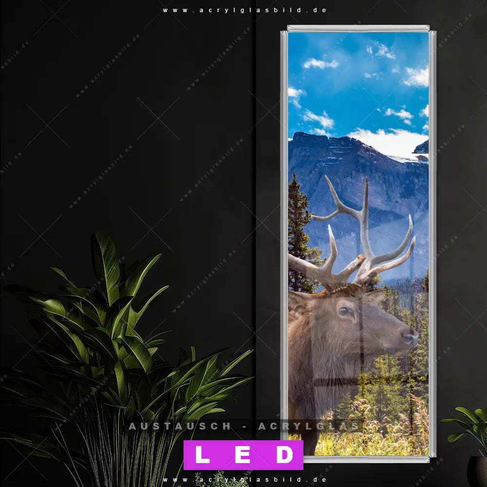 Wechsel-Acrylglas Canvalight® DIA | Hirsch vor Bergkulisse | Schmal