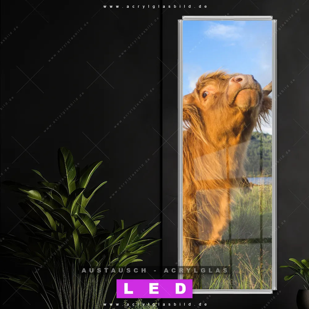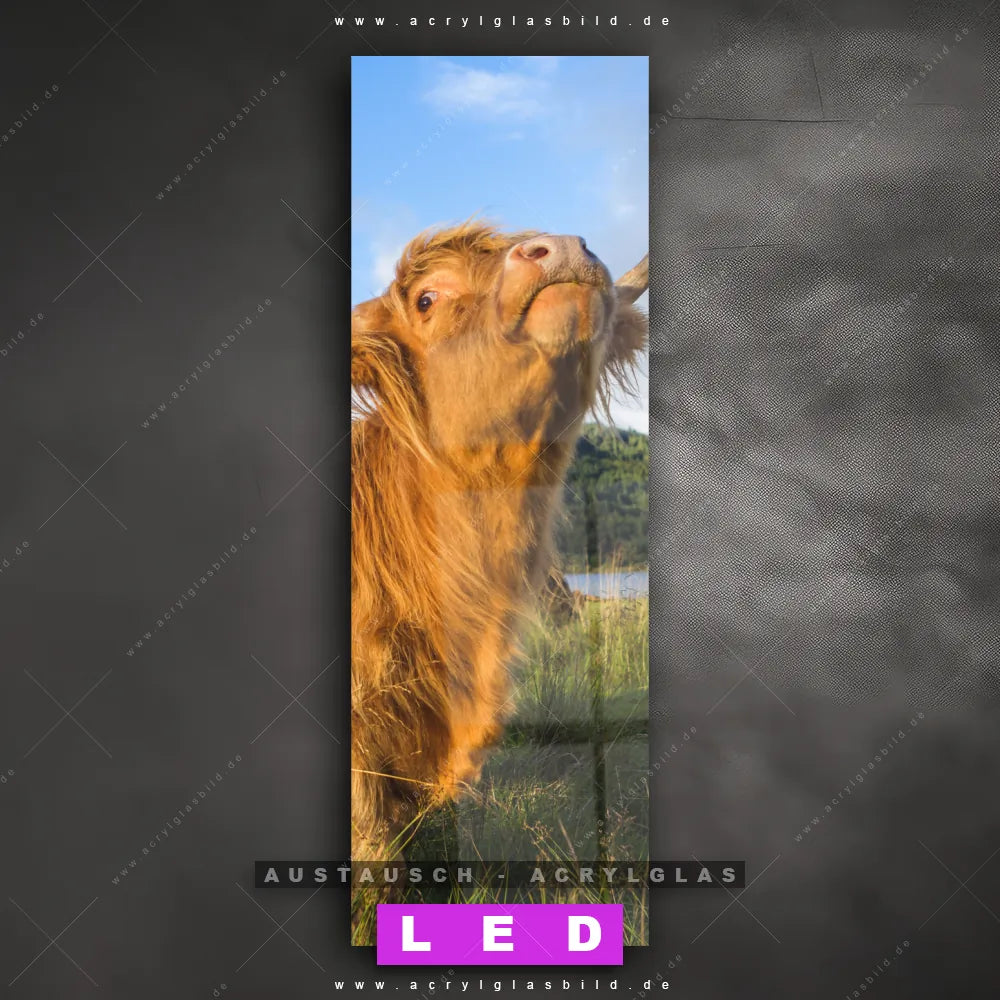 Begriffe wie Tier, Stier, Hochlandkuh, Highlander, Büffel, Rind, Bulle, Hochland, Hochlandrind haben dich auf der Suche nach deinem neuen Austausch-Acrylglasbild inspiriert? Dann sollte das Wechsel-Acrylglasbild Hochlandrind auf grüner Wiese für dein bereits vorhandenes LED Acrylglasbild Canvalight® DIA den Weg zu dir finden.