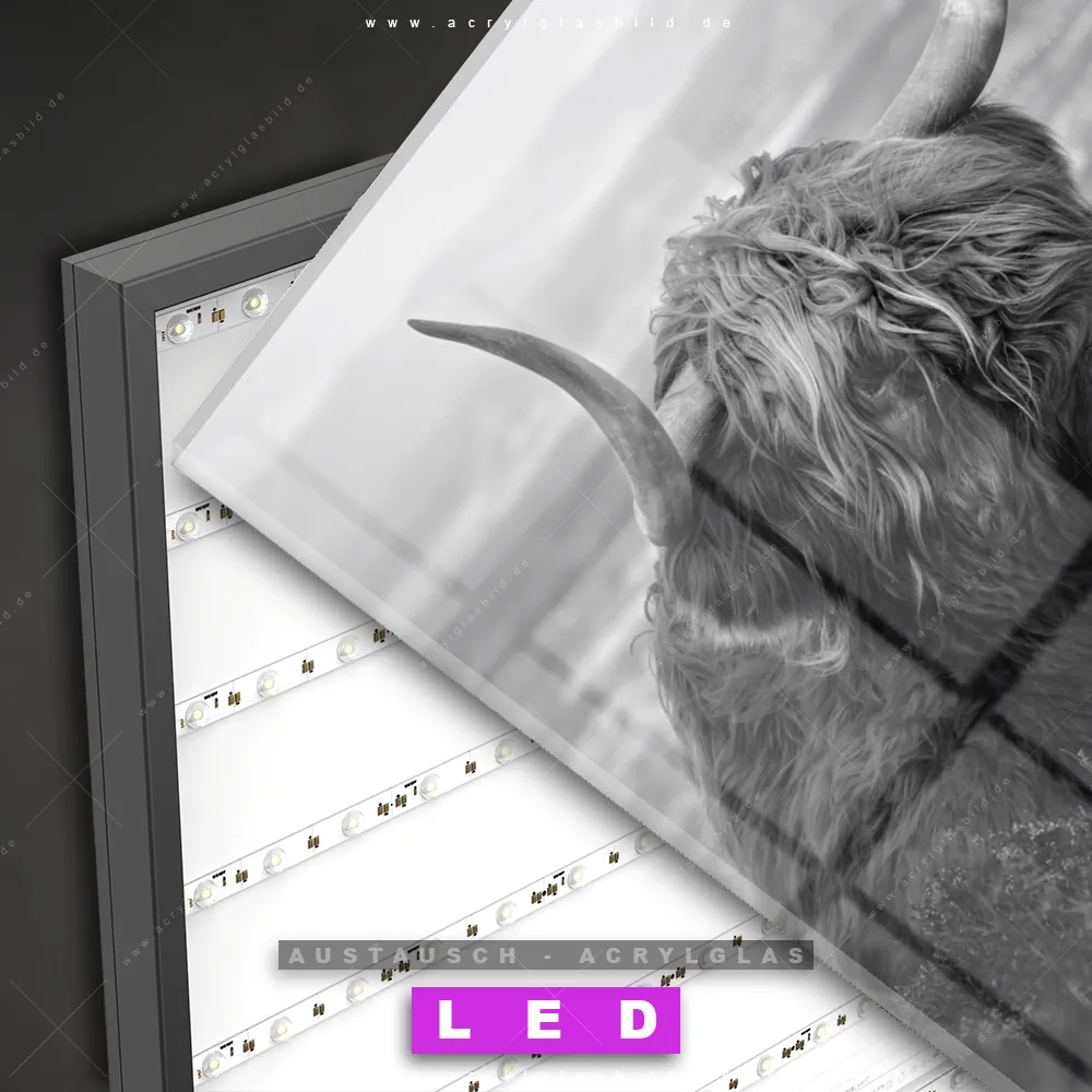 Begriffe wie Tier, Stier, Hochlandkuh, Highlander, Büffel, Rind, Bulle, Hochlandrind, Kuh haben dich auf der Suche nach deinem neuen Austausch-Acrylglasbild inspiriert? Dann sollte das Wechsel-Acrylglasbild liegendes Hochlandrind für dein bereits vorhandenes LED Acrylglasbild Canvalight® DIA den Weg zu dir finden.