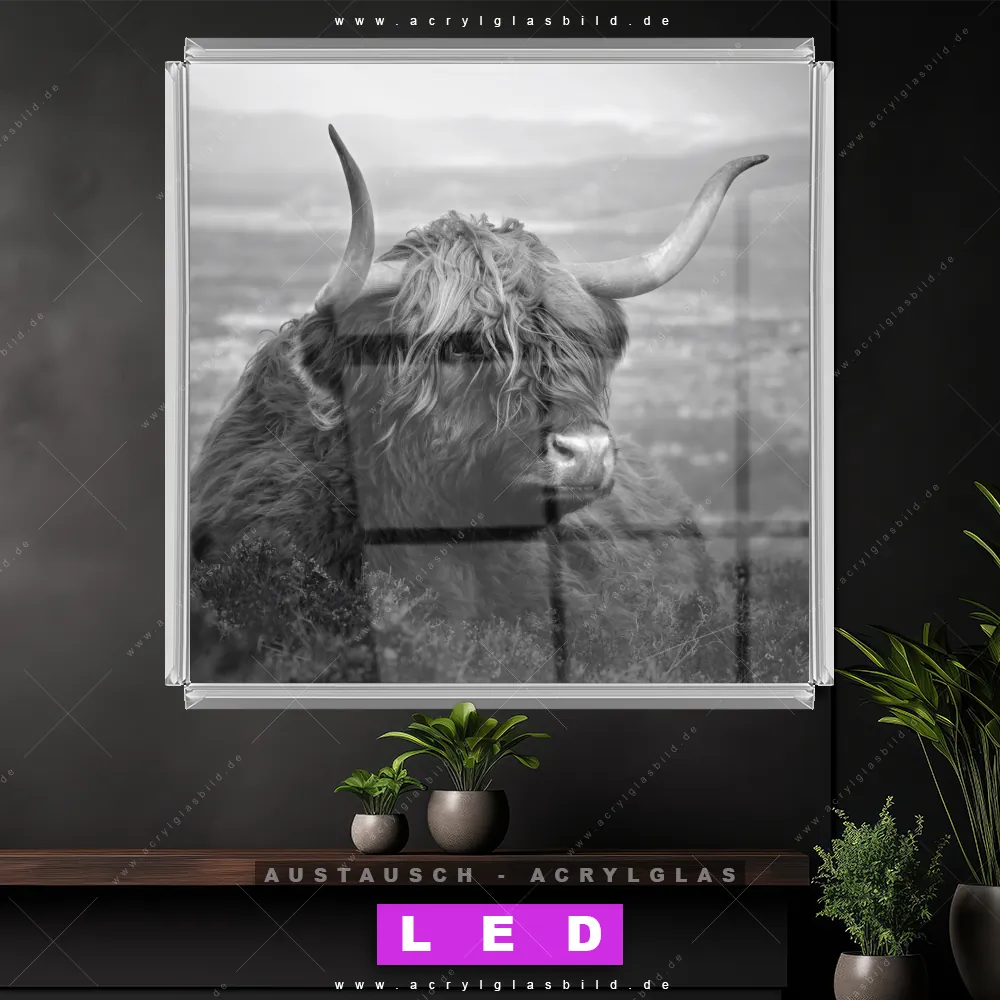 Wechsel-Acrylglas Canvalight® DIA | Hochland-Rind Schwarz-Weiß No. 2 | Quadrat