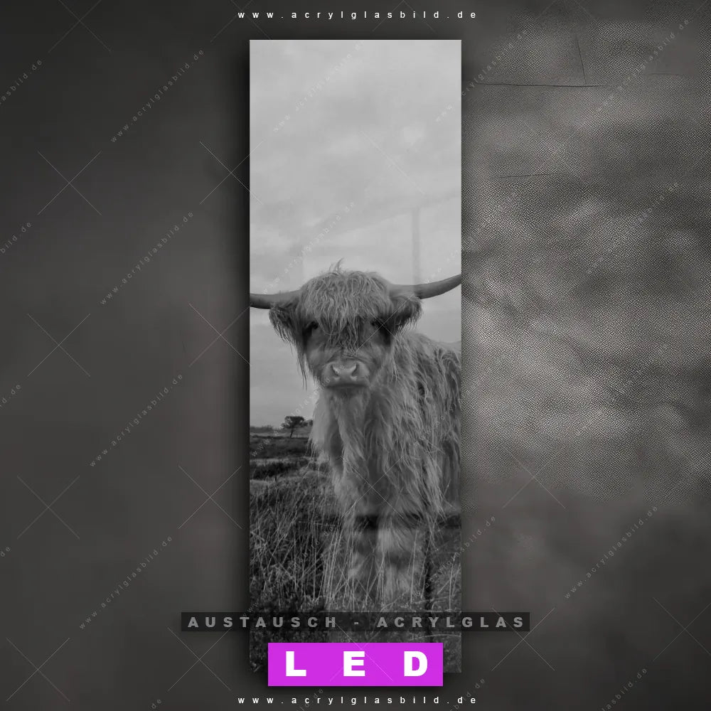 Begriffe wie Tier, Stier, Hochlandkuh, Highlander, Büffel, Rind, Bulle, Hochlandrind haben dich auf der Suche nach deinem neuen Austausch-Acrylglasbild inspiriert? Dann sollte das Wechsel-Acrylglasbild Hochlandrinder auf der Wiese für dein bereits vorhandenes LED Acrylglasbild Canvalight® DIA den Weg zu dir finden.