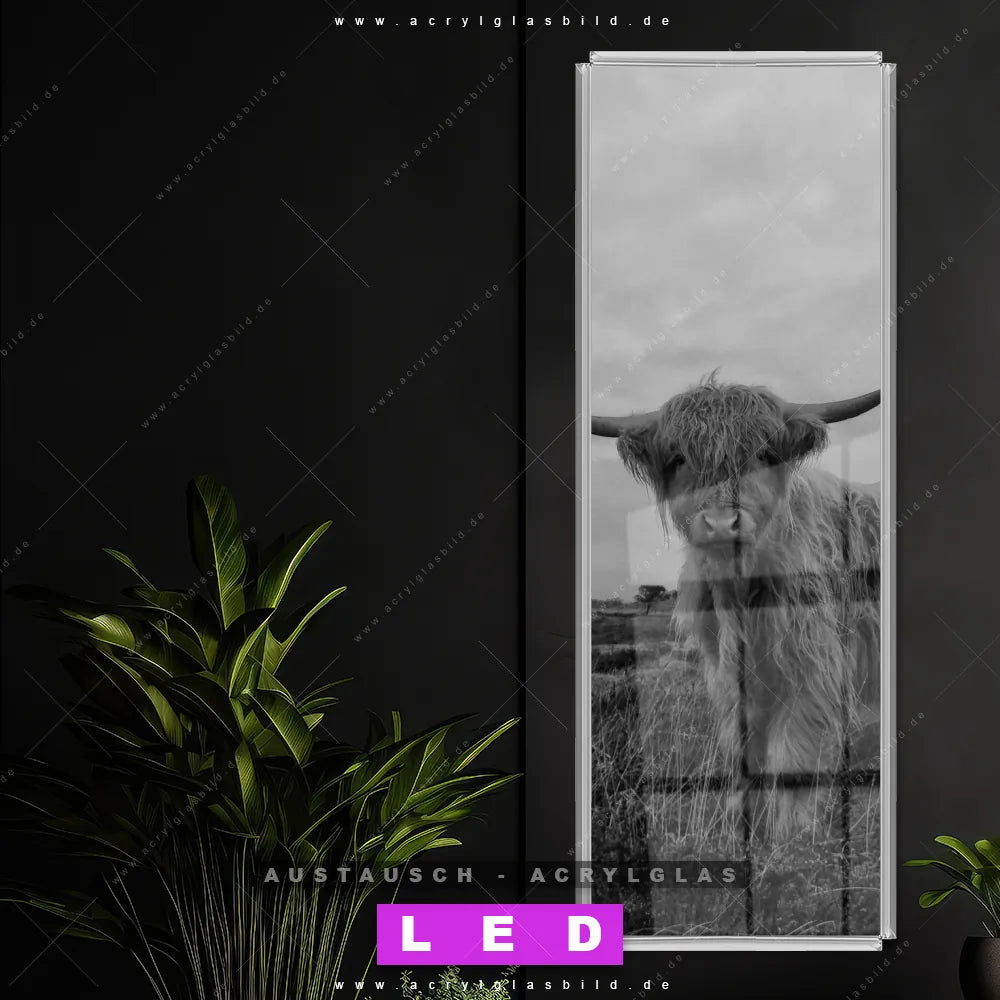 Wechsel-Acrylglas Canvalight® DIA | Hochland-Rind Schwarz-Weiß | Schmal
