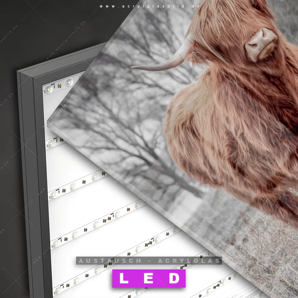 Begriffe wie Tier, Stier, Hochlandkuh, Highlander, Büffel, Rind, Bulle, Hochlandrind, Wiese, Weide, Hörner, Gras haben dich auf der Suche nach deinem neuen Austausch-Acrylglasbild inspiriert? Dann sollte das Wechsel-Acrylglasbild Hochlandrind auf Weide für dein bereits vorhandenes LED Acrylglasbild Canvalight® DIA den Weg zu dir finden.