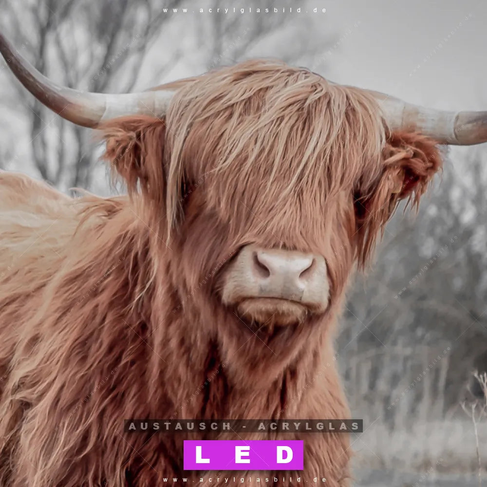 Begriffe wie Tier, Stier, Hochlandkuh, Highlander, Büffel, Rind, Bulle, Hochlandrind, Wiese, Weide, Hörner, Gras haben dich auf der Suche nach deinem neuen Austausch-Acrylglasbild inspiriert? Dann sollte das Wechsel-Acrylglasbild Hochlandrind auf Weide für dein bereits vorhandenes LED Acrylglasbild Canvalight® DIA den Weg zu dir finden.