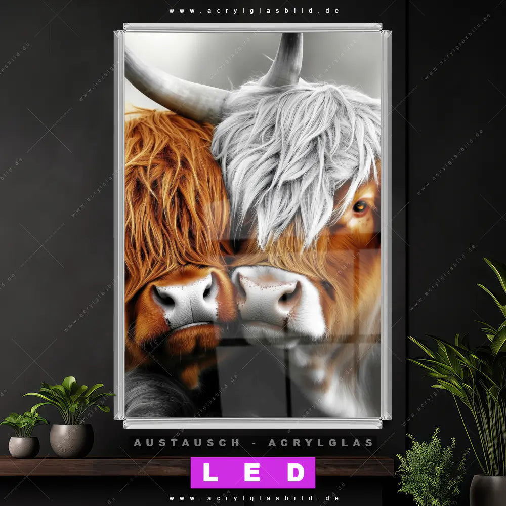 Begriffe wie Tier, Stier, Hochlandkuh, Highlander, Büffel, Rind, Bulle, Hochlandrind, Kuh, Ochse, Hörner haben dich auf der Suche nach deinem neuen Austausch-Acrylglasbild inspiriert? Dann sollte das Wechsel-Acrylglasbild Rinder Seite an Seite für dein bereits vorhandenes LED Acrylglasbild Canvalight® DIA den Weg zu dir finden.