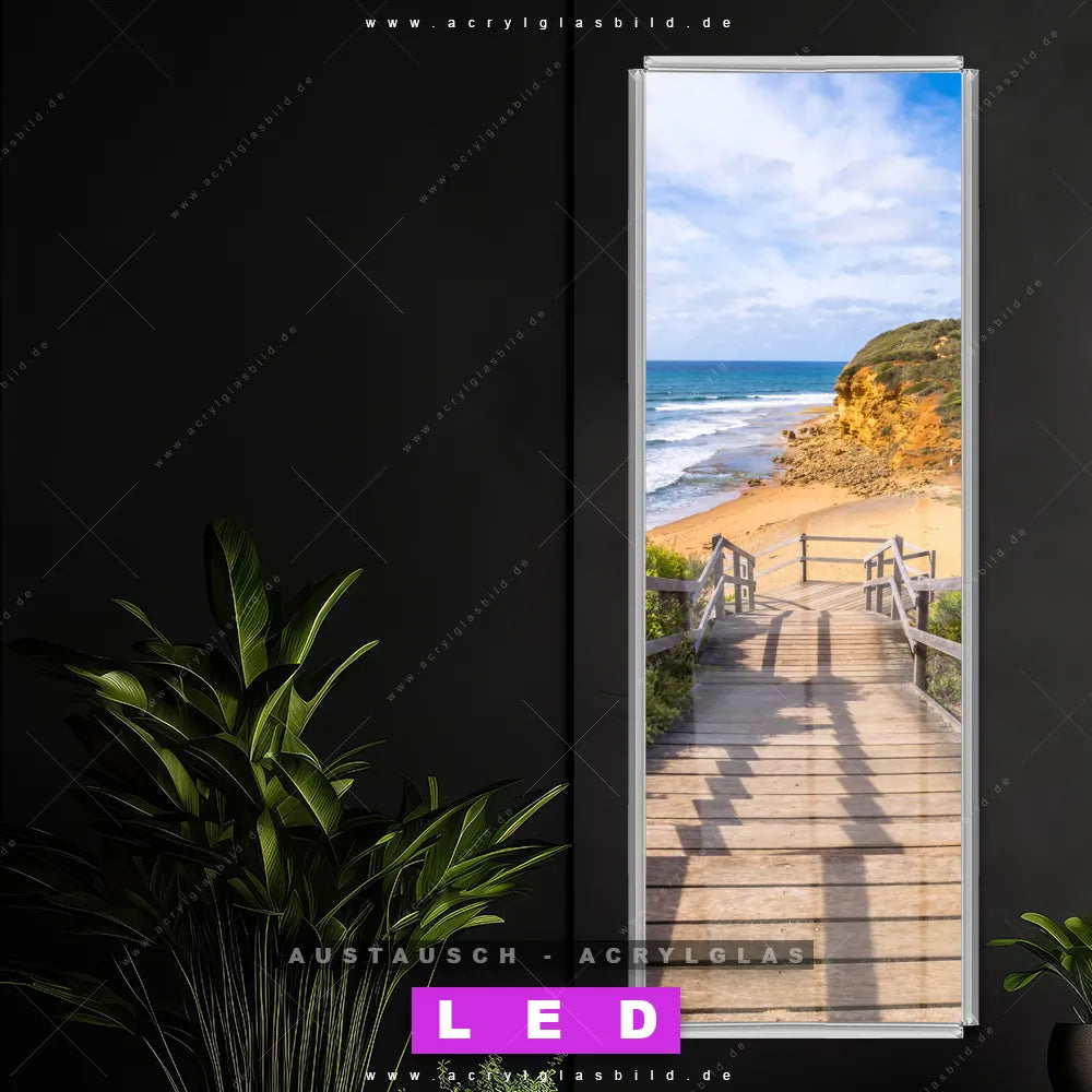 Begriffe wie Strand, Meer, Treppe, Küste, Weg, Natur, Sommer, Frühling haben dich auf der Suche nach deinem neuen Austausch-Acrylglasbild inspiriert? Dann sollte das Wechsel-Acrylglasbild Geheimer Strandzugang für dein bereits vorhandenes LED Acrylglasbild Canvalight® DIA den Weg zu dir finden.