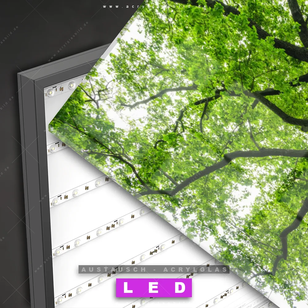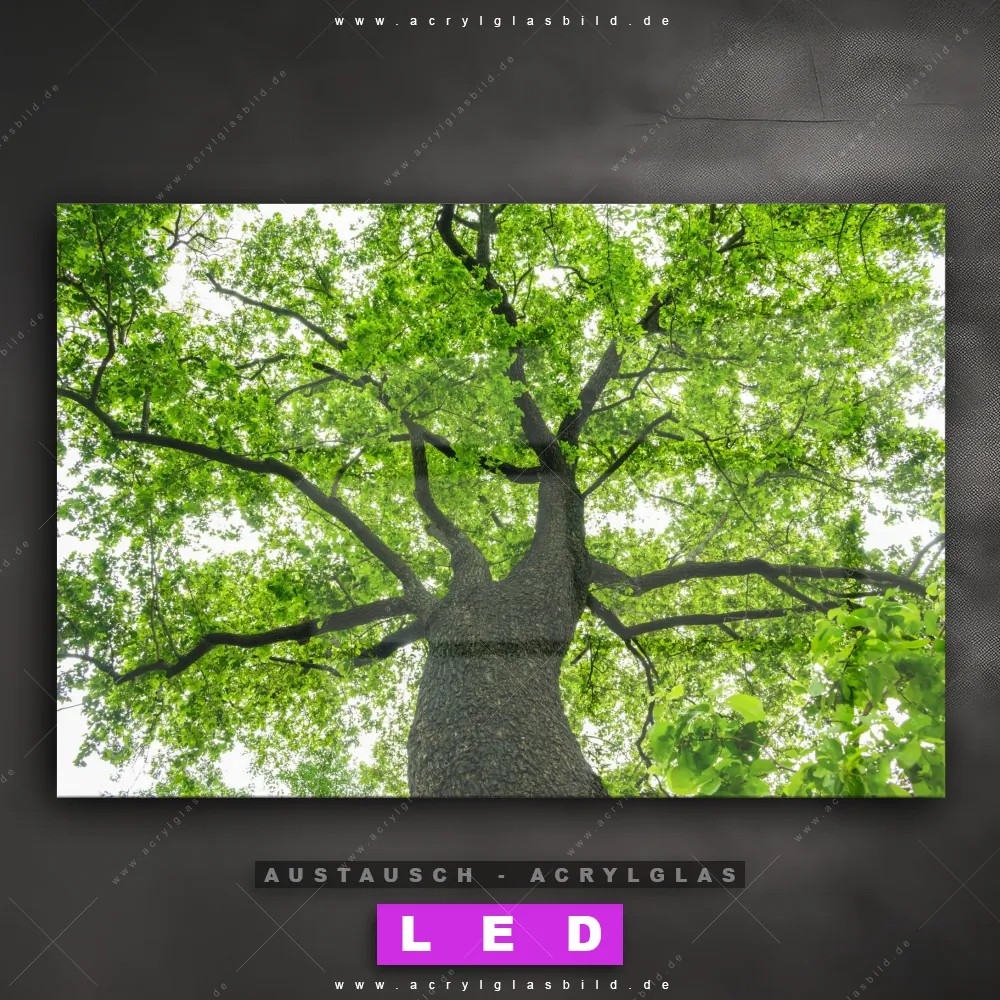Begriffe wie Wald, Bäume, Natur, Baum, Ruhe, Stille, Baumkrone, Froschperspektive, Laubbaum, Buche, Eiche, Zweige haben dich auf der Suche nach deinem neuen Austausch-Acrylglasbild inspiriert? Dann sollte das Wechsel-Acrylglasbild Großer Laubbaum für dein bereits vorhandenes LED Acrylglasbild Canvalight® DIA den Weg zu dir finden.