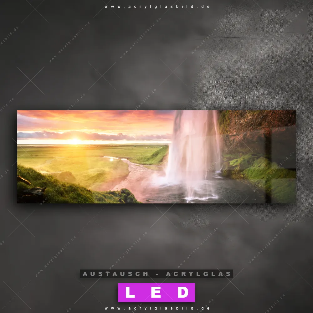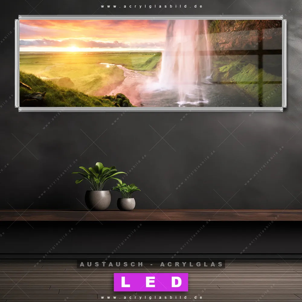 Wechsel-Acrylglas Canvalight® DIA | Isländischer Wasserfall | Panorama