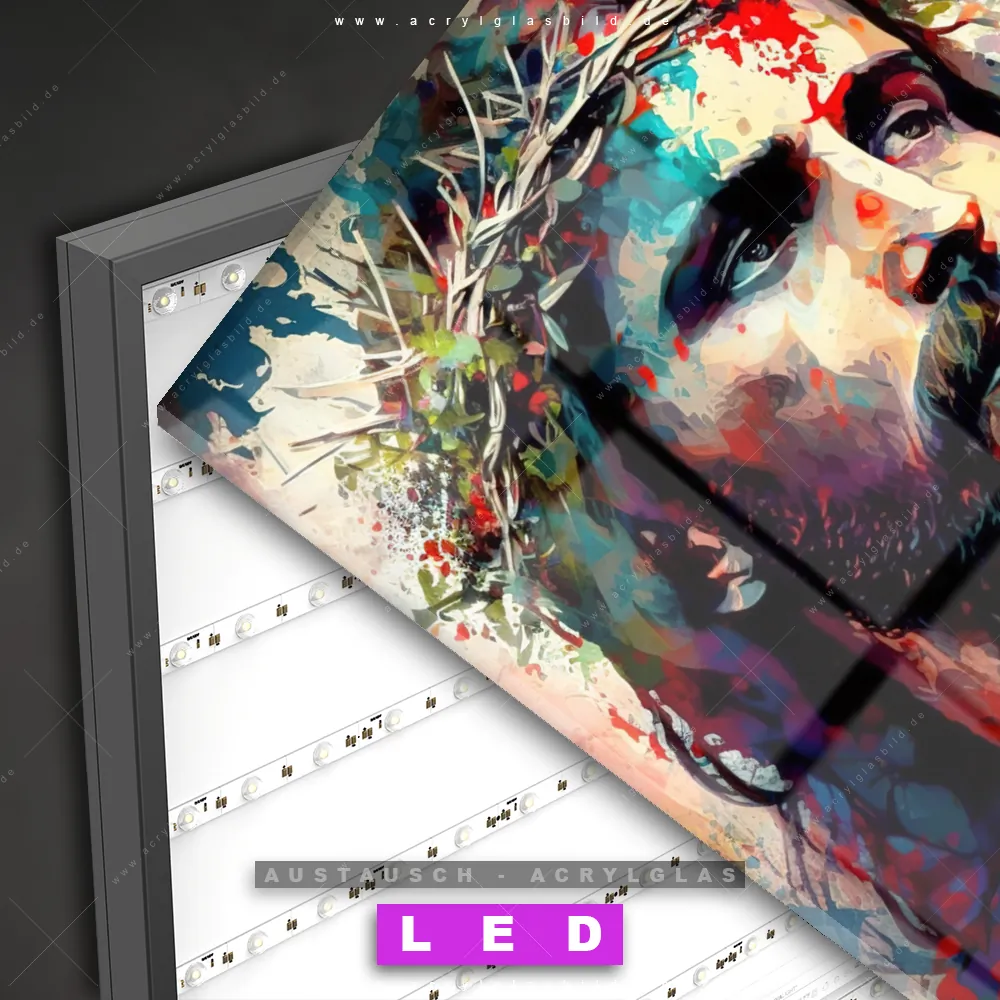 Begriffe wie Spiritualität, Leiden, Glaube, Hoffnung, Erlösung, Nachdenklichkeit haben dich auf der Suche nach deinem neuen Austausch-Acrylglasbild inspiriert? Dann sollte das Wechsel-Acrylglasbild Martyrium des Geistigen für dein bereits vorhandenes LED Acrylglasbild Canvalight® DIA den Weg zu dir finden.