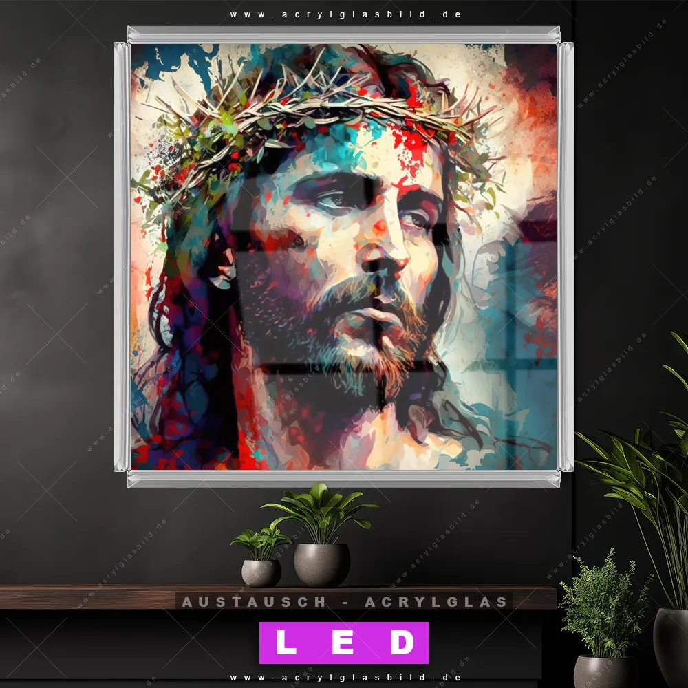 Wechsel-Acrylglas Canvalight® DIA | Jesus Christus mit Dornenkrone | Quadrat