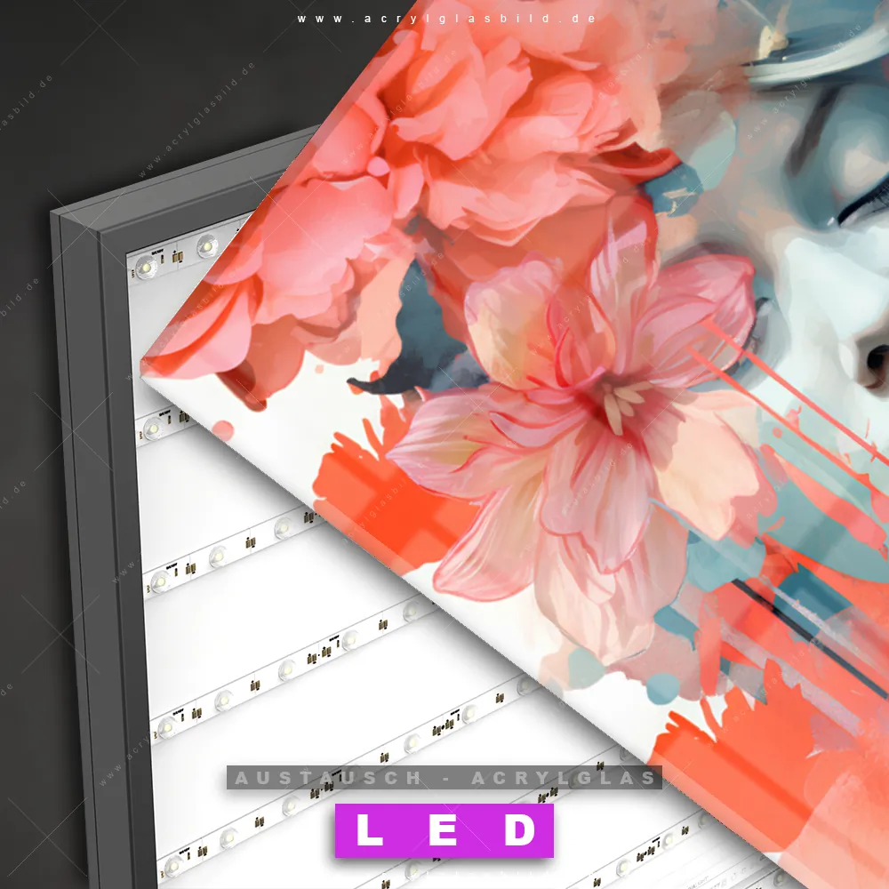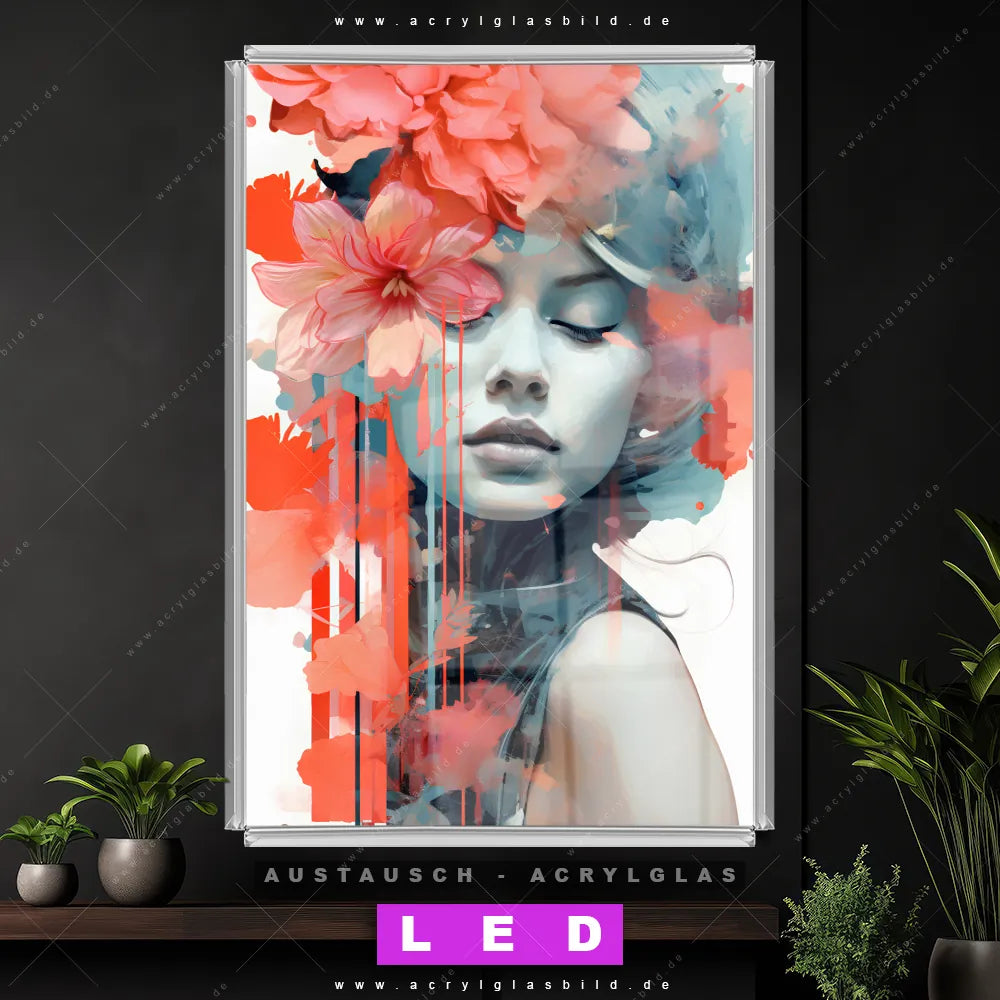 Wechsel-Acrylglas Canvalight® DIA | Jolanda - Frau mit Blumen im Haar | Hochformat