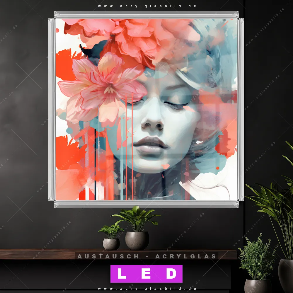 Wechsel-Acrylglas Canvalight® DIA | Jolanda - Frau mit Blumen im Haar | Quadrat