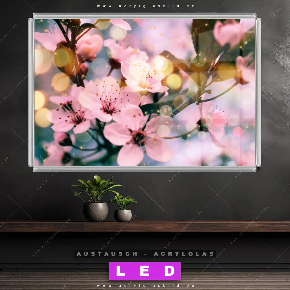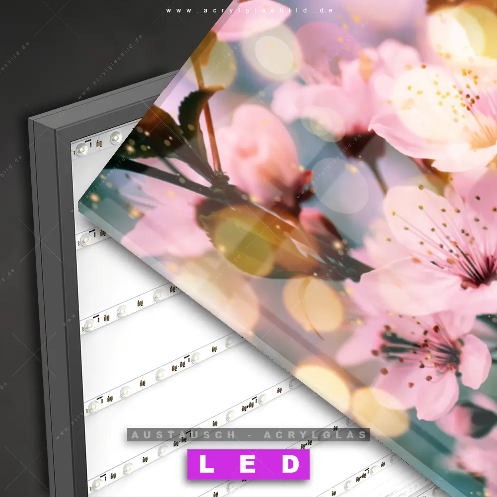 Begriffe wie Blumen, Kirschblüten, Sakura, Pflanze, Natur, Blüten, Glitzer, Sonnenlicht, Frühling, Kirschbaum haben dich auf der Suche nach deinem neuen Austausch-Acrylglasbild inspiriert? Dann sollte das Wechsel-Acrylglasbild Blütenzauber mit Lichteffekten für dein bereits vorhandenes LED Acrylglasbild Canvalight® DIA den Weg zu dir finden.