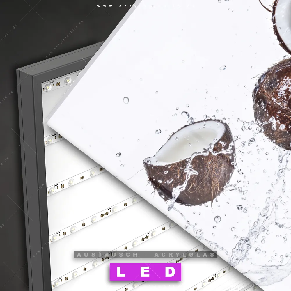 Wechsel-Acrylglas Canvalight® DIA | Kokosnüsse mit Wasserspritzer | Quadrat