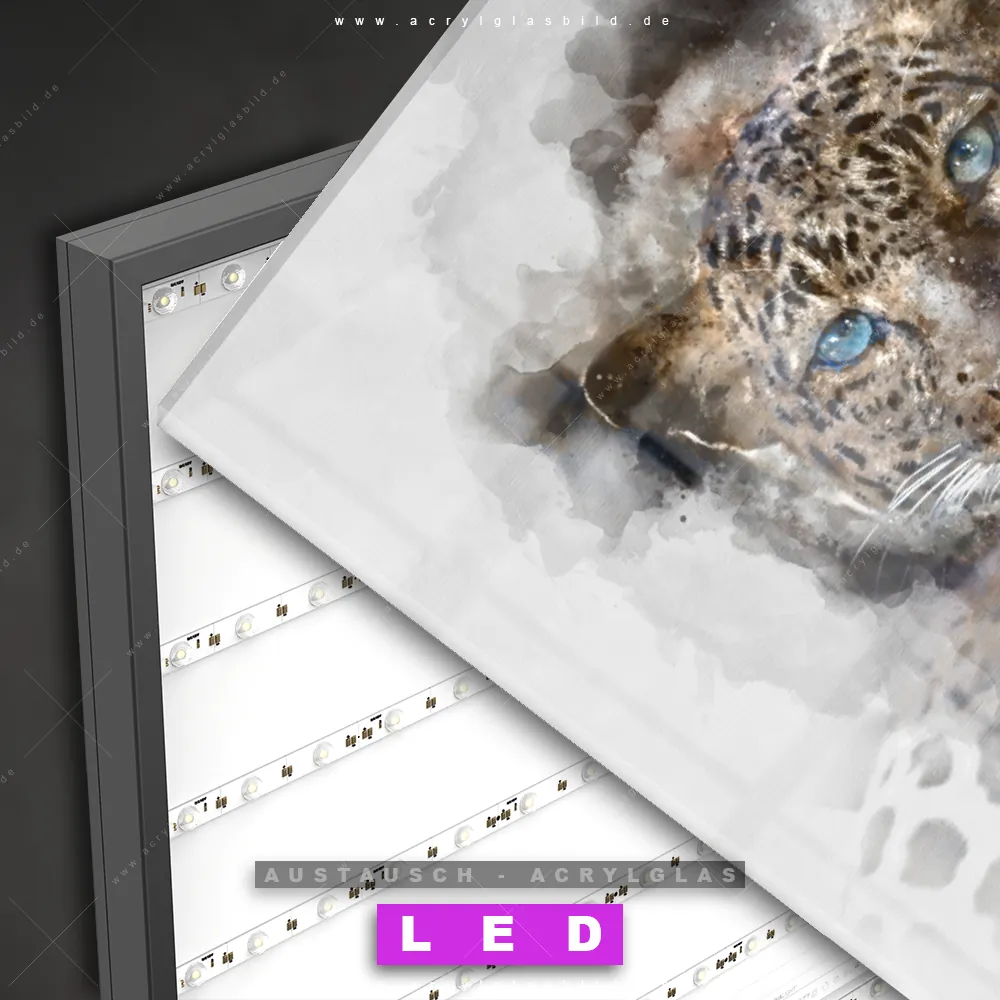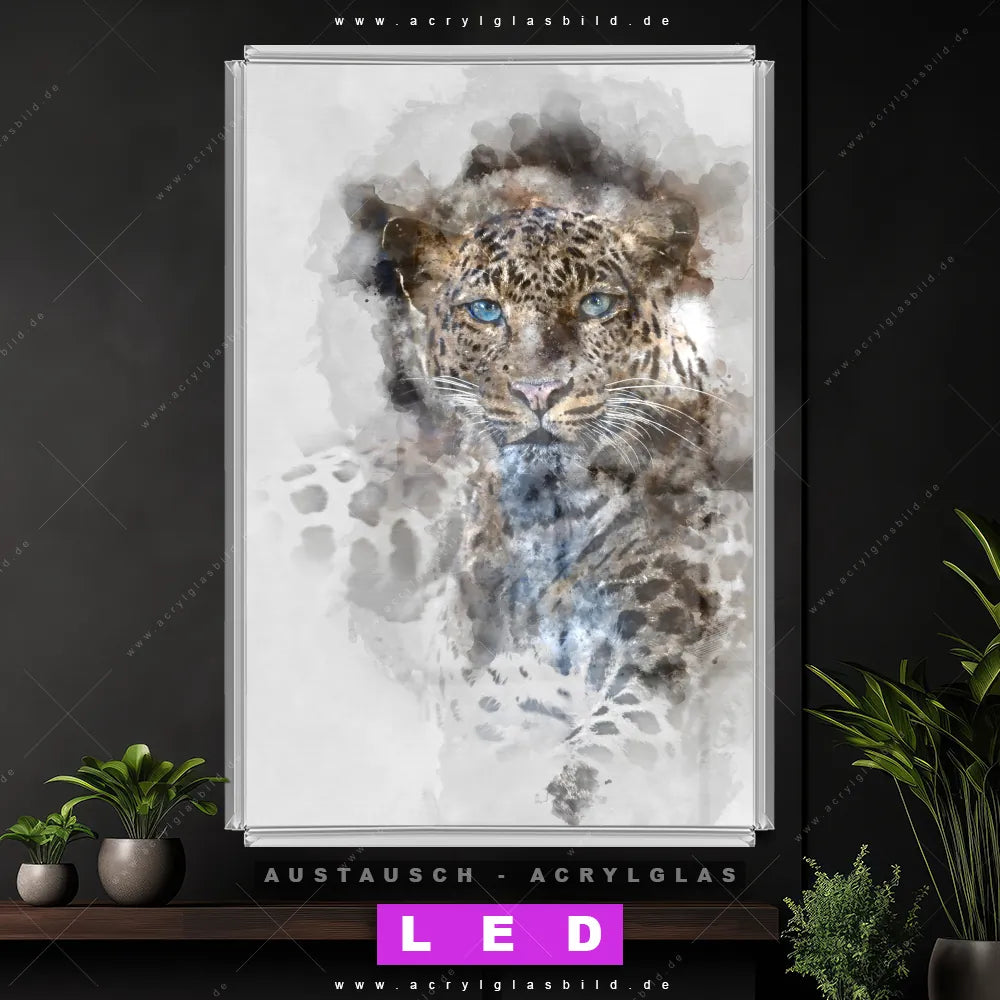 Wechsel-Acrylglas Canvalight® DIA | Leopard Aquarell | Hochformat