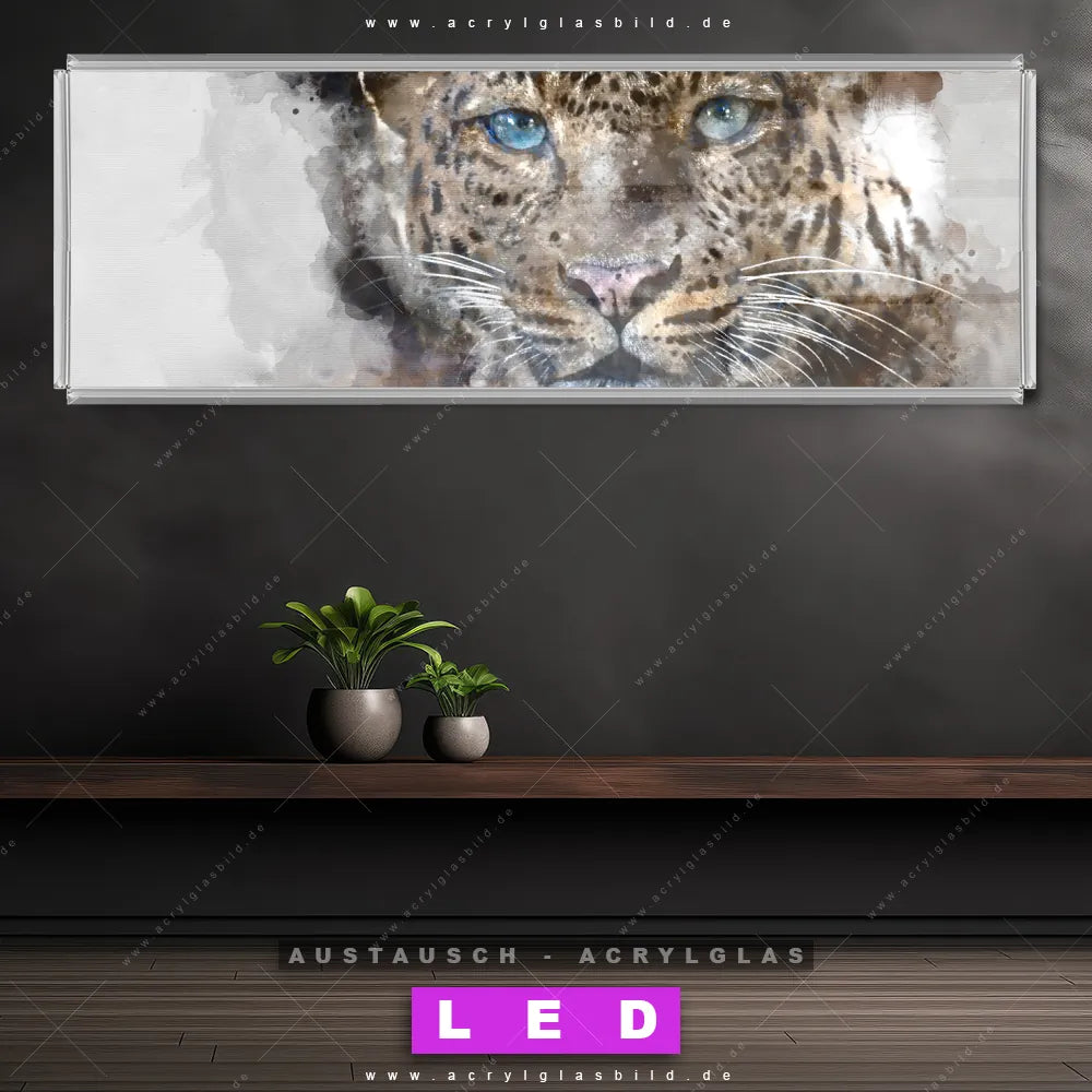 Wechsel-Acrylglas Canvalight® DIA | Leopard Aquarell | Panorama