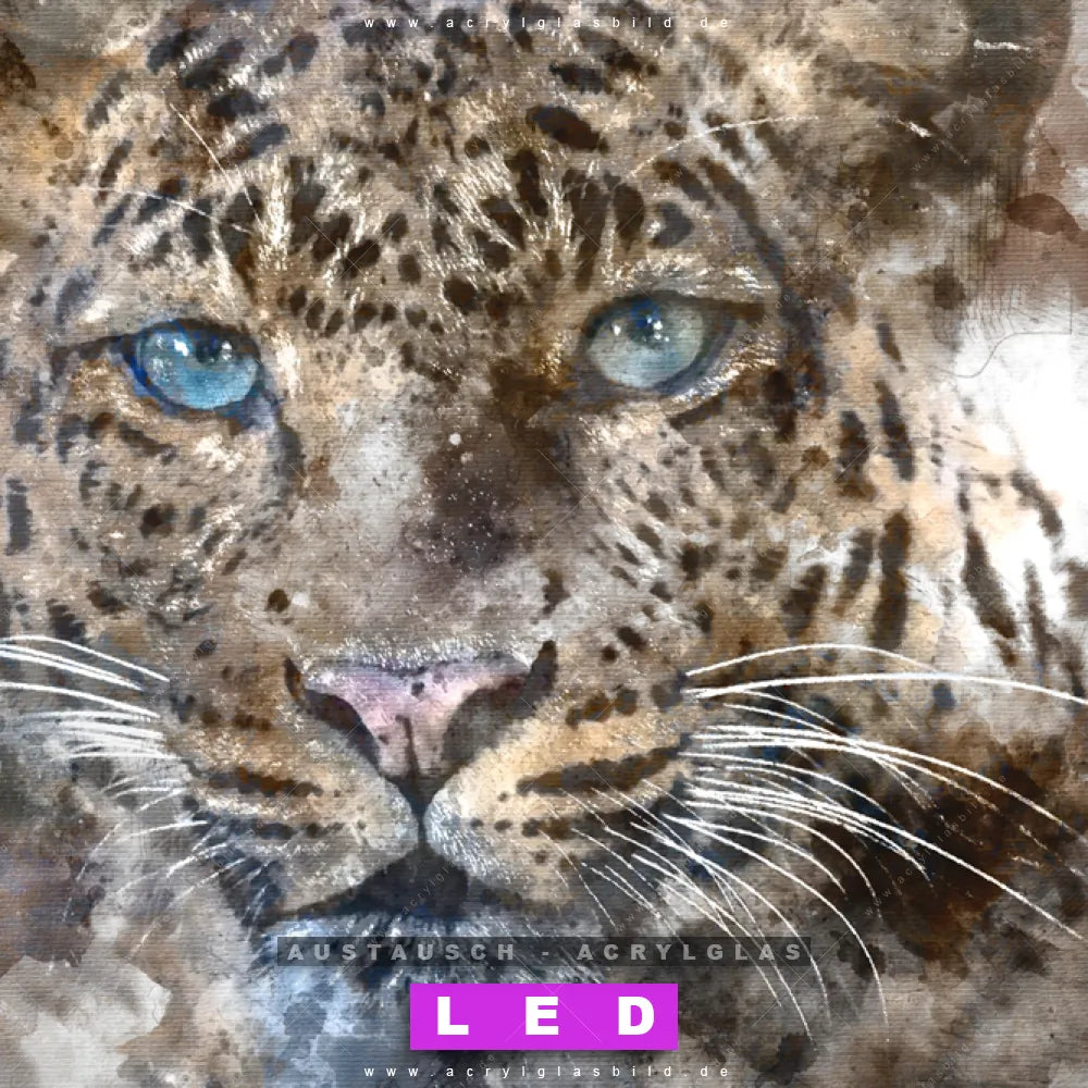 Begriffe wie Tier, Kunst, Aquarell, Leopard, Jaguar, Gepard, Raubkatze, Wildkatze, Afrika haben dich auf der Suche nach deinem neuen Austausch-Acrylglasbild inspiriert? Dann sollte das Wechsel-Acrylglasbild Leoparden-Auge in Aquarell für dein bereits vorhandenes LED Acrylglasbild Canvalight® DIA den Weg zu dir finden.