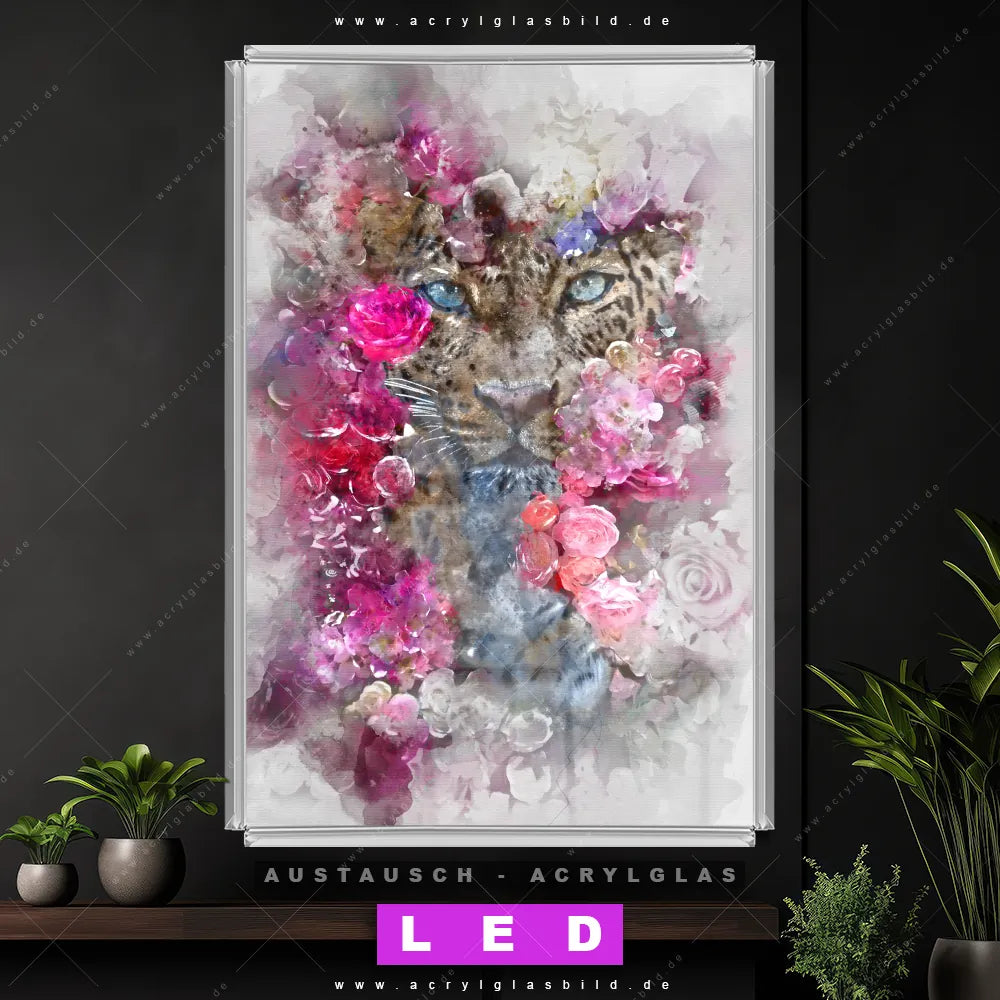 Wechsel-Acrylglas Canvalight® DIA | Leopard & Blumen | Hochformat