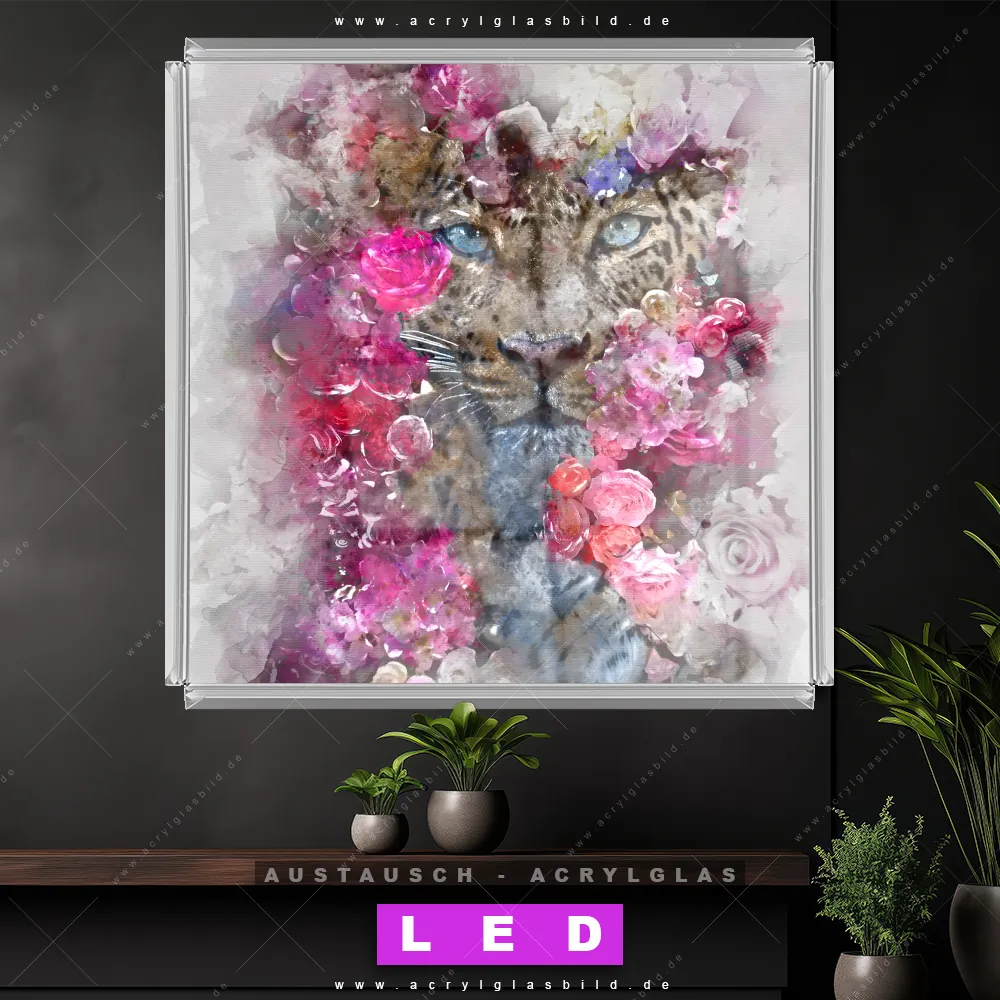 Wechsel-Acrylglas Canvalight® DIA | Leopard & Blumen | Quadrat