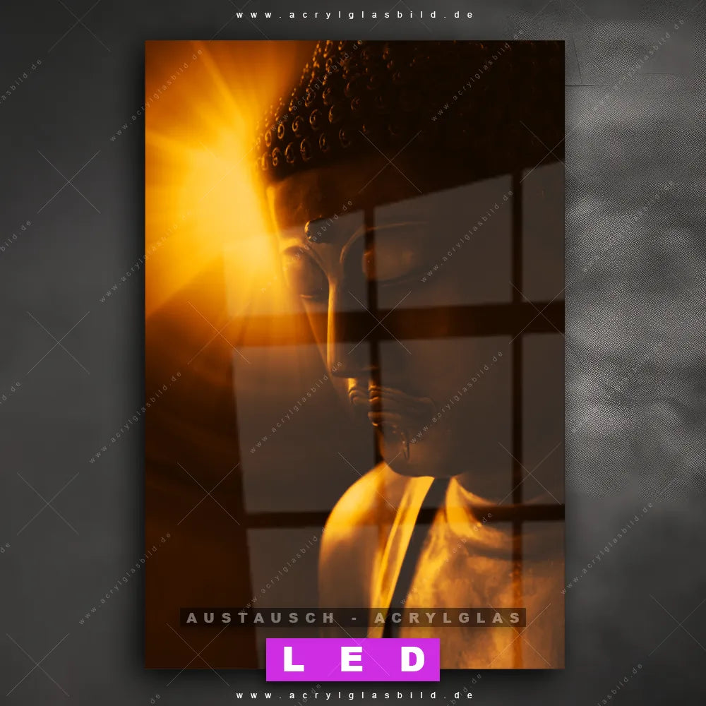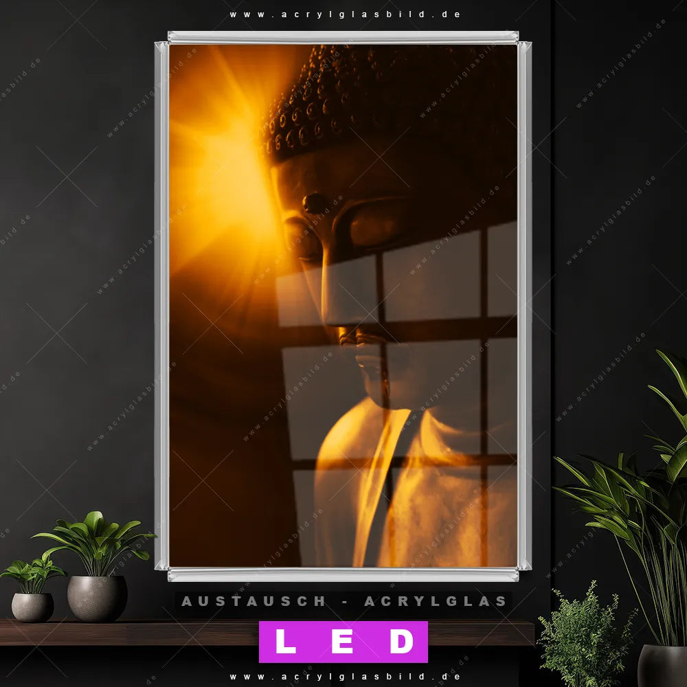 Begriffe wie Buddha, Buddhismus, Religion, Feng Shui, Zen, Meditation, Licht, Weisheit, Erleuchtung haben dich auf der Suche nach deinem neuen Austausch-Acrylglasbild inspiriert? Dann sollte das Wechsel-Acrylglasbild Buddha mit Lichtschein im Hintergrund für dein bereits vorhandenes LED Acrylglasbild Canvalight® DIA den Weg zu dir finden.