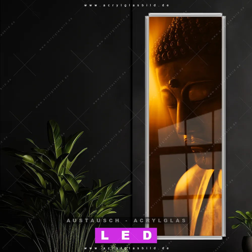 Begriffe wie Buddha, Buddhismus, Religion, Feng Shui, Zen, Meditation, Licht, Weisheit, Erleuchtung haben dich auf der Suche nach deinem neuen Austausch-Acrylglasbild inspiriert? Dann sollte das Wechsel-Acrylglasbild Buddha mit Lichtschein im Hintergrund für dein bereits vorhandenes LED Acrylglasbild Canvalight® DIA den Weg zu dir finden.