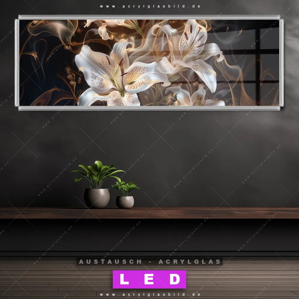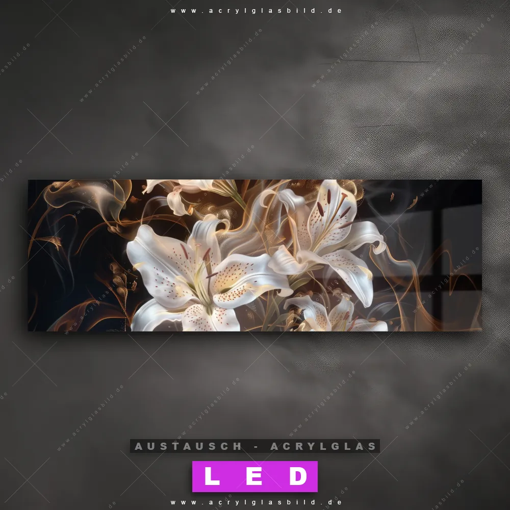 Wechsel-Acrylglas Canvalight® DIA | Lilien in goldenem Rauch | Panorama