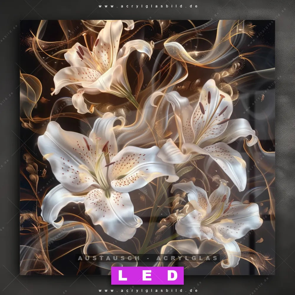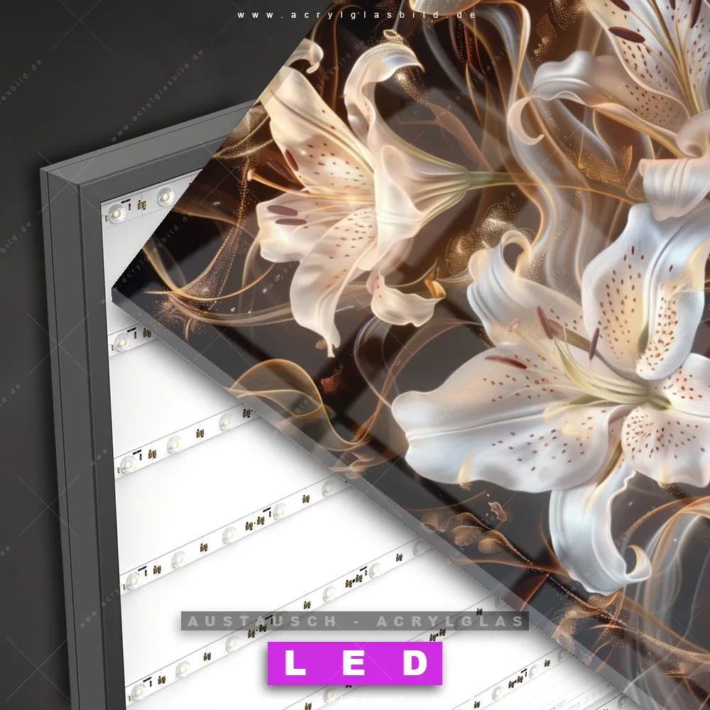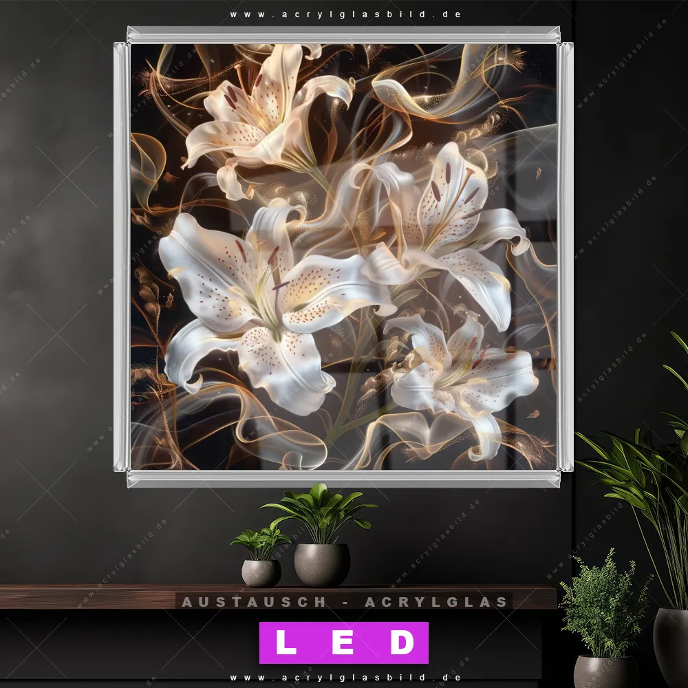 Wechsel-Acrylglas Canvalight® DIA | Lilien in goldenem Rauch | Quadrat