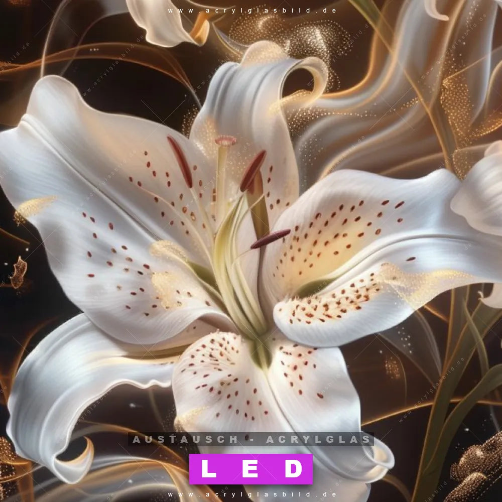 Begriffe wie Lilien, Blüten, Blumen, Pflanze, Natur, Glitzer, Frühling, Rauch, Nebel haben dich auf der Suche nach deinem neuen Austausch-Acrylglasbild inspiriert? Dann sollte das Wechsel-Acrylglasbild Leuchtender Blütenzauber für dein bereits vorhandenes LED Acrylglasbild Canvalight® DIA den Weg zu dir finden.