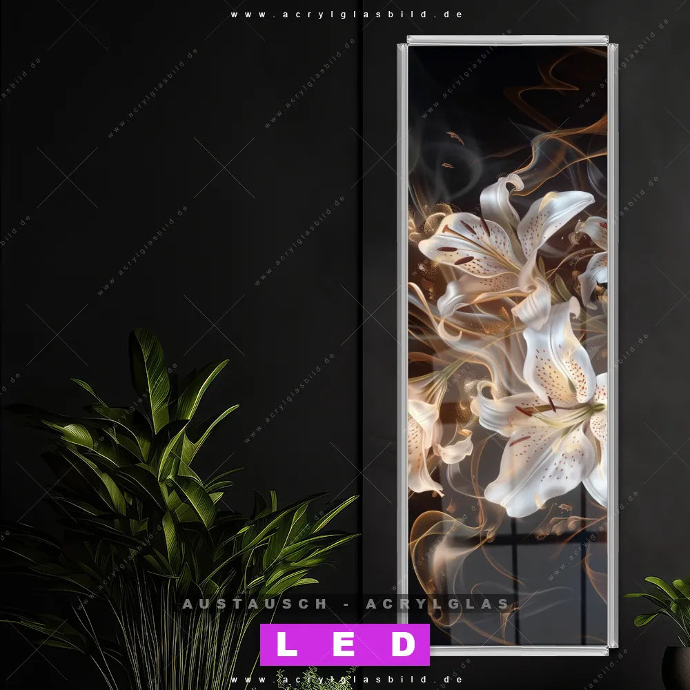 Wechsel-Acrylglas Canvalight® DIA | Lilien in goldenem Rauch | Schmal
