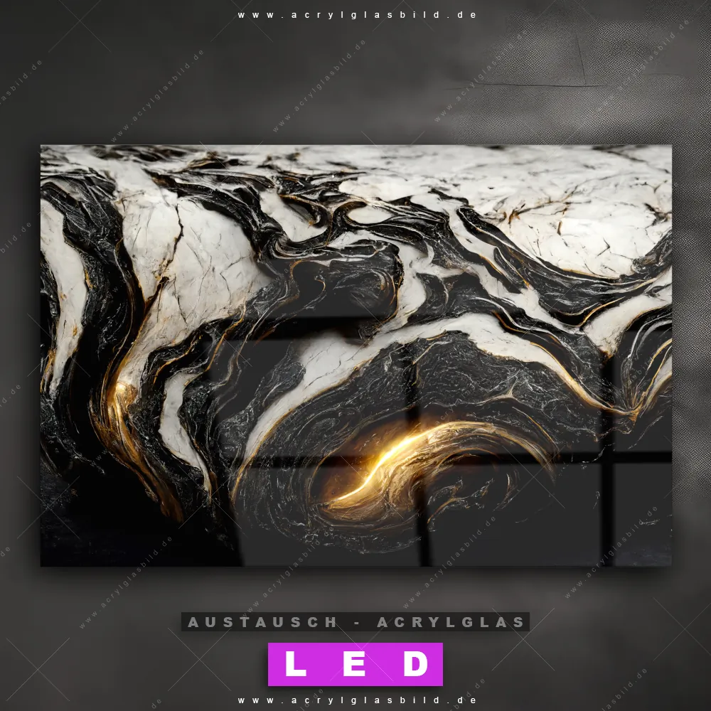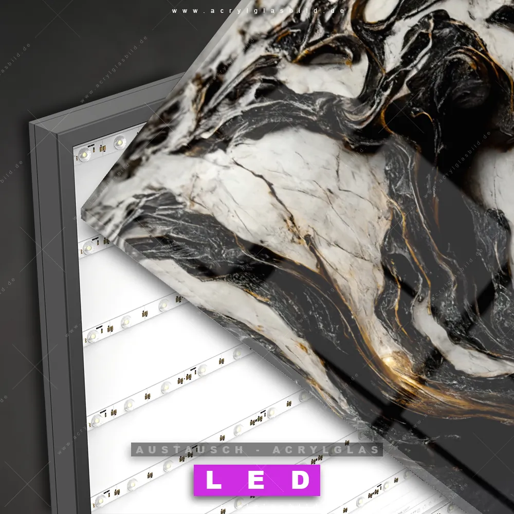 Wechsel-Acrylglas Canvalight® DIA | Liquid Marmor Schwarz Gold | Querformat