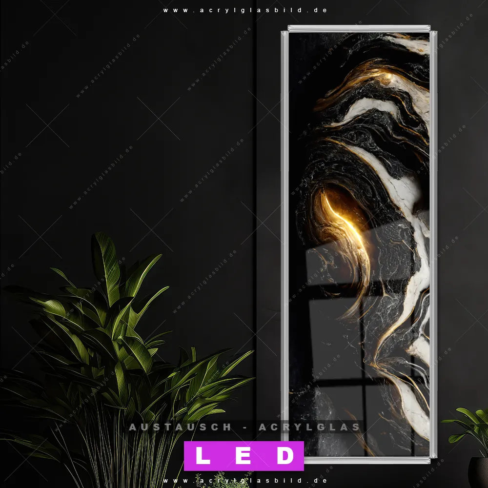 Wechsel-Acrylglas Canvalight® DIA | Liquid Marmor Schwarz Gold | Schmal