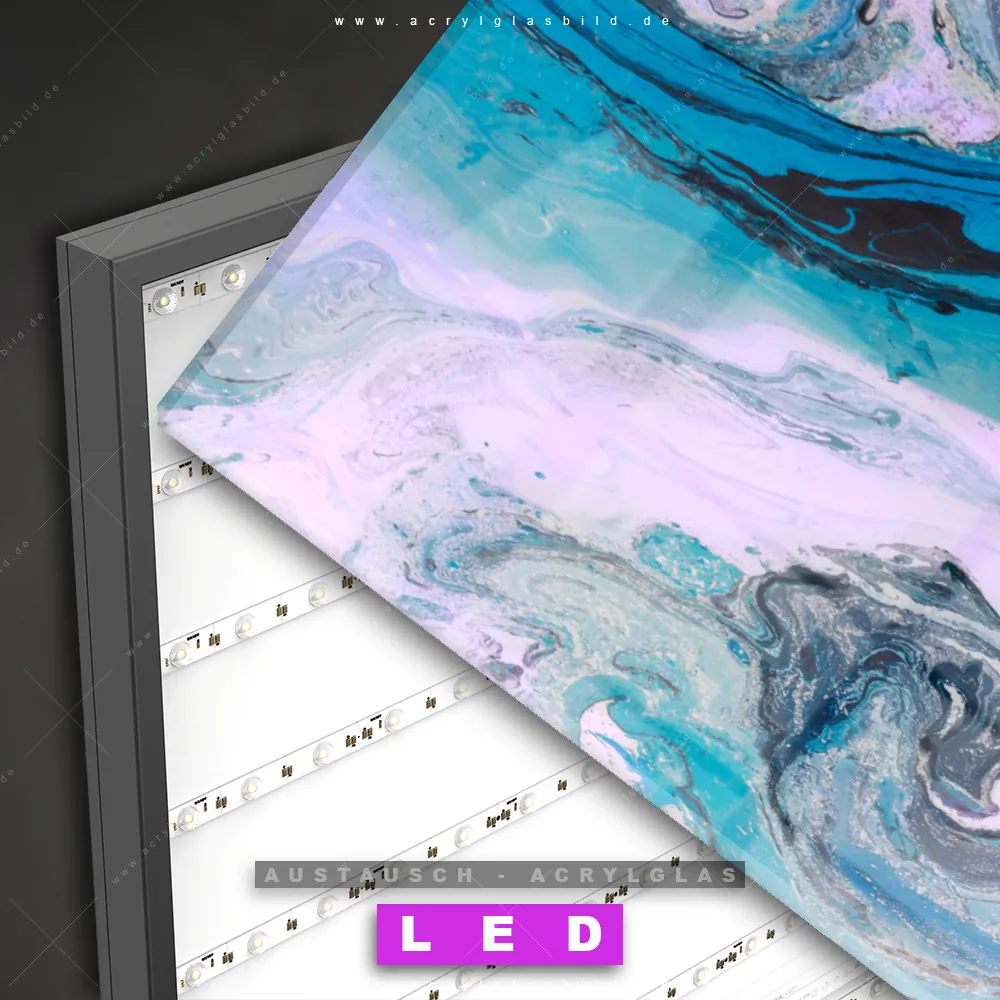 Wechsel-Acrylglas Canvalight® DIA | Liquid Marmor Türkis Flieder | Querformat