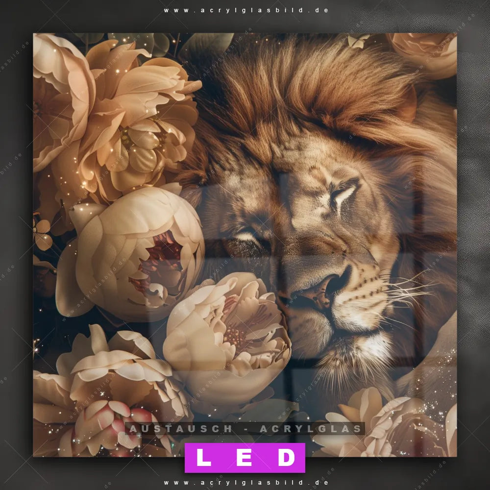 Wechsel-Acrylglas Canvalight® DIA | Löwe schläft in Blüten | Quadrat