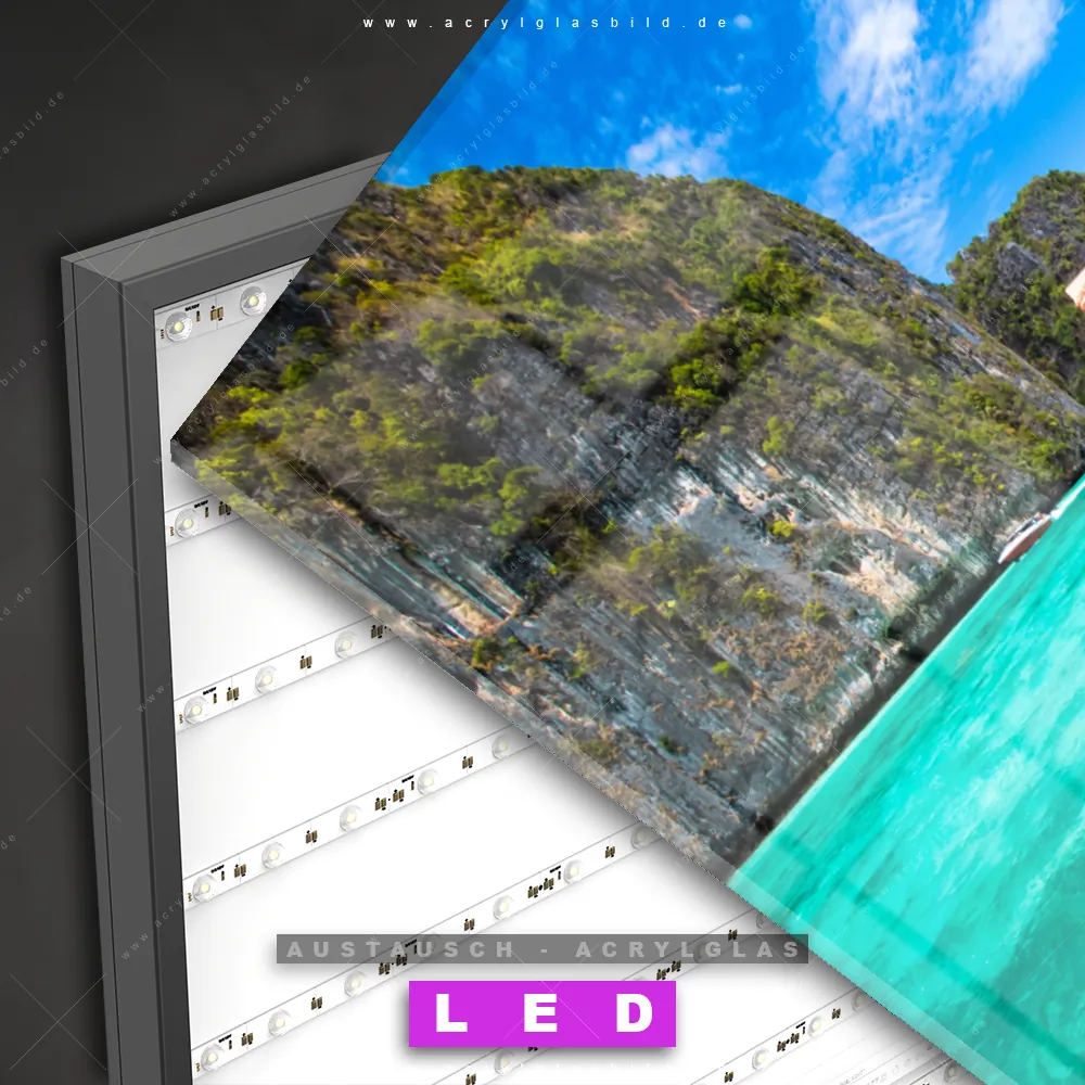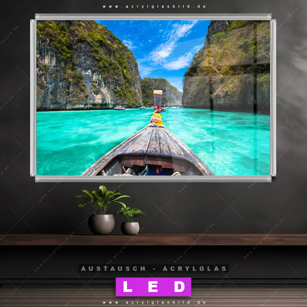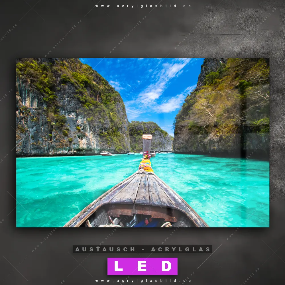 Begriffe wie Meer, Strand, Thailand, Bucht, Asien, Sommer, Boot, Felsen, Berg, Südsee - Karibik, Urlaub - Reisen haben dich auf der Suche nach deinem neuen Austausch-Acrylglasbild inspiriert? Dann sollte das Wechsel-Acrylglasbild Ruea Hang Yao in Asien für dein bereits vorhandenes LED Acrylglasbild Canvalight® DIA den Weg zu dir finden.
