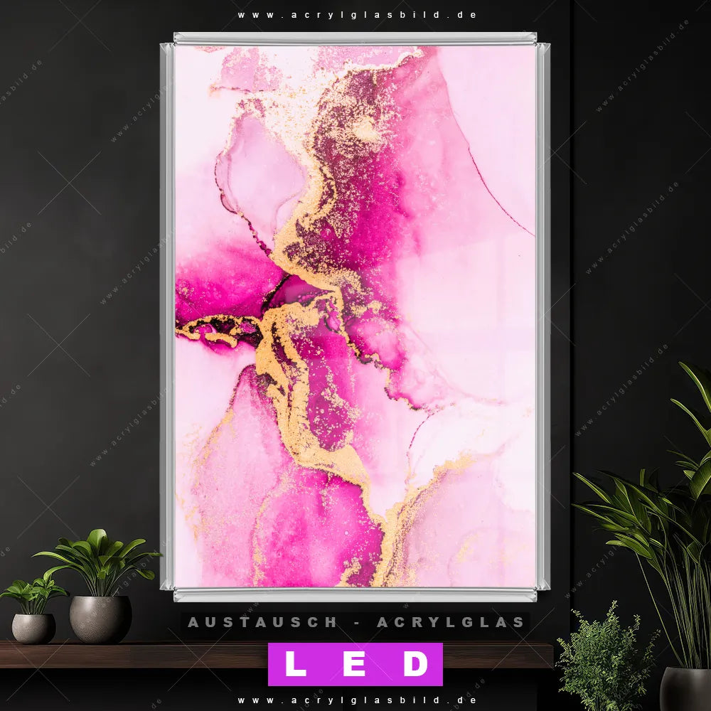 Begriffe wie Flüssigkeit, Acryl, flüssig, Farbe, Marmorierung, Tinte, Alkohol, Fluid Art haben dich auf der Suche nach deinem neuen Austausch-Acrylglasbild inspiriert? Dann sollte das Wechsel-Acrylglasbild Fluid Painting pink-gold für dein bereits vorhandenes LED Acrylglasbild Canvalight® DIA den Weg zu dir finden.