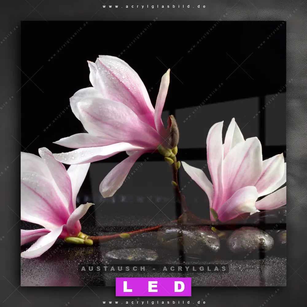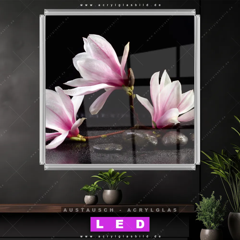 Wechsel-Acrylglas Canvalight® DIA | Magnolien & Zen Steine | Quadrat