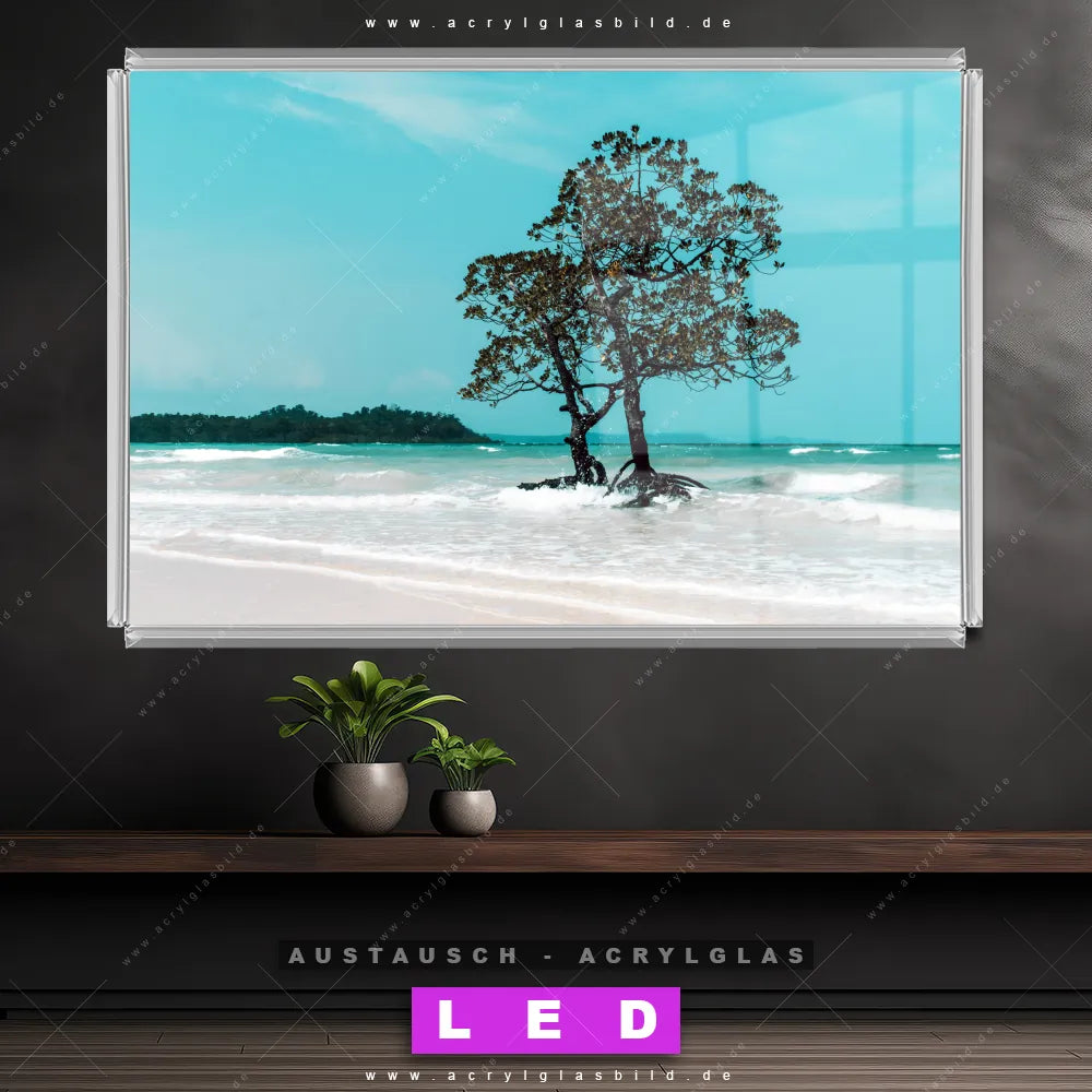 Begriffe wie Küste, Landschaft, Sommer, Südsee - Karibik, Urlaub - Reisen haben dich auf der Suche nach deinem neuen Austausch-Acrylglasbild inspiriert? Dann sollte das Wechsel-Acrylglasbild Mangrove im Ozean für dein bereits vorhandenes LED Acrylglasbild Canvalight® DIA den Weg zu dir finden.