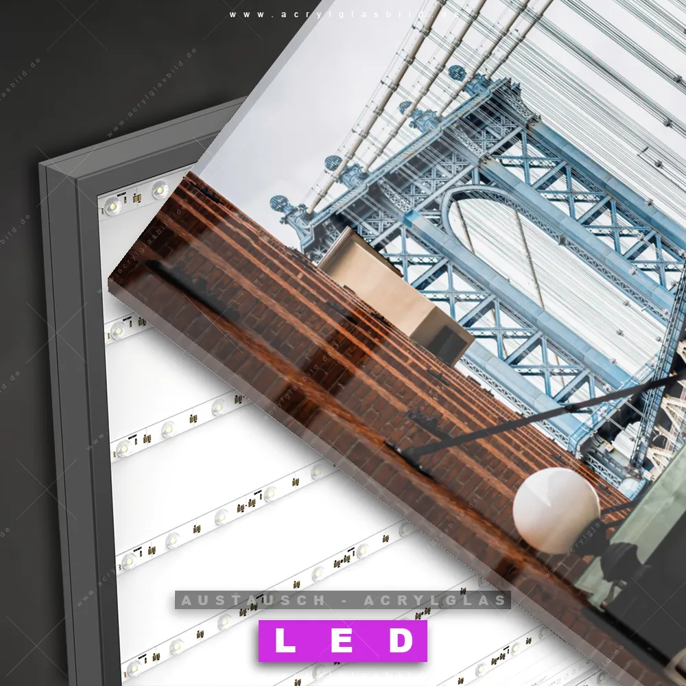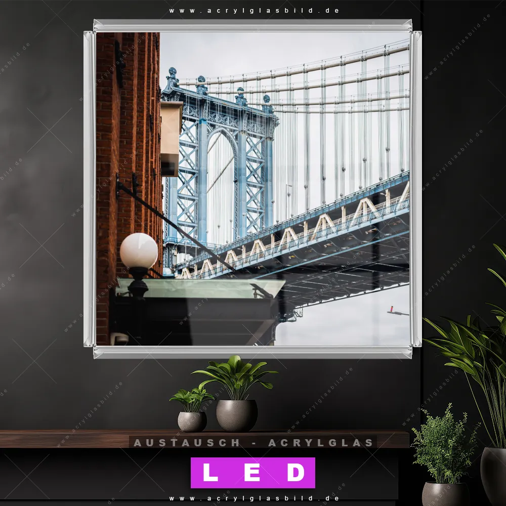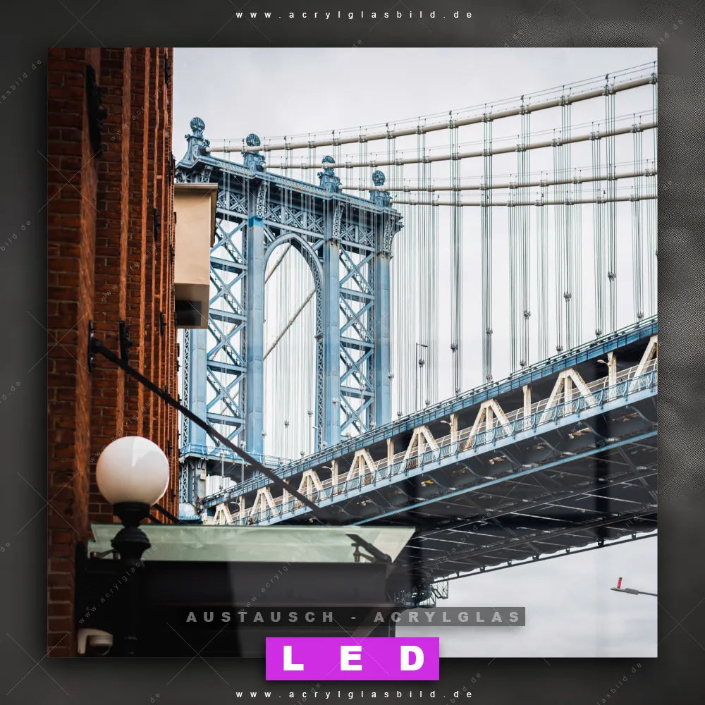Begriffe wie Brücke, New York City, Skyline, Manhatten, Amerika, New York, USA haben dich auf der Suche nach deinem neuen Austausch-Acrylglasbild inspiriert? Dann sollte das Wechsel-Acrylglasbild Brücke in Manhatten für dein bereits vorhandenes LED Acrylglasbild Canvalight® DIA den Weg zu dir finden.