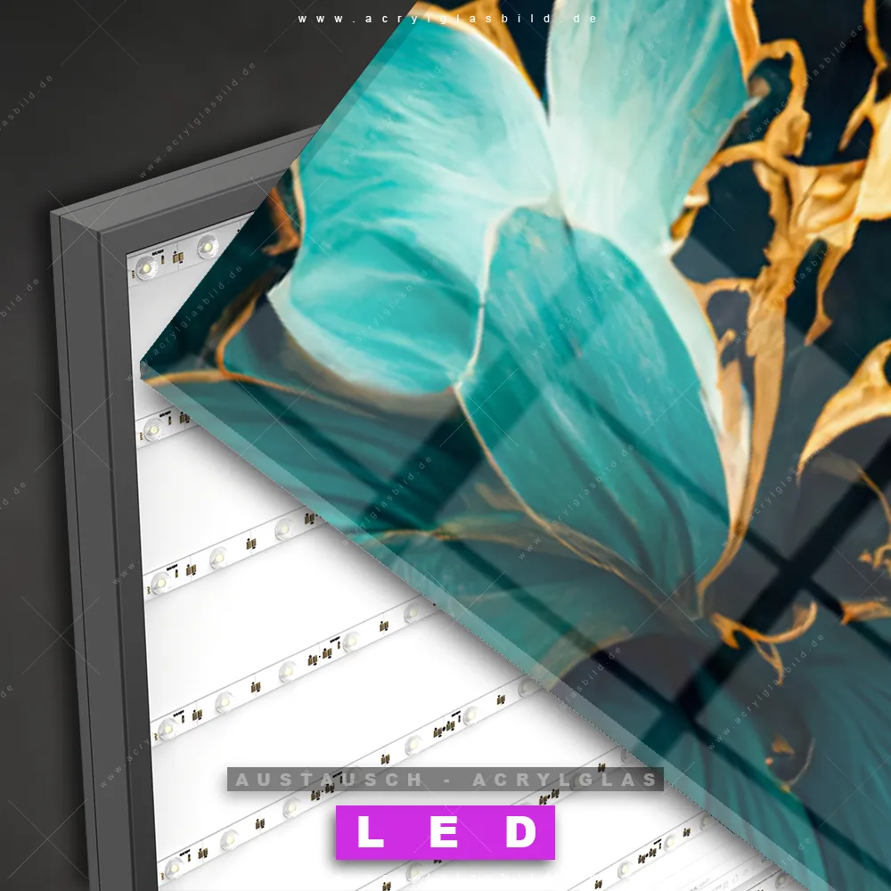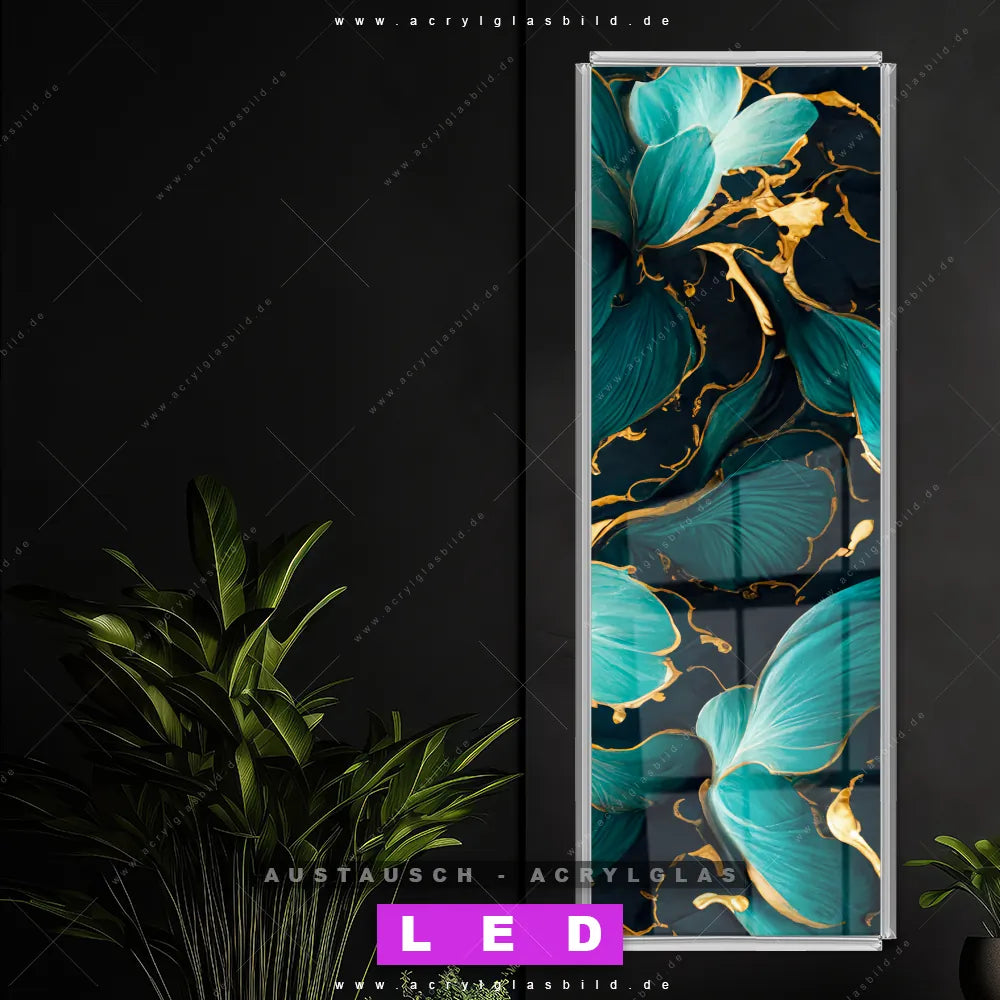 Wechsel-Acrylglas Canvalight® DIA | Marmor Blüten in türkis & gold | Schmal