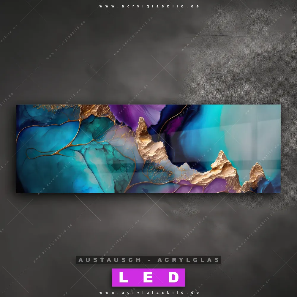 Begriffe wie Marmor, Flüssigkeit, Acryl, flüssig, Farbe, Marmorierung, Tinte, Fluid Art haben dich auf der Suche nach deinem neuen Austausch-Acrylglasbild inspiriert? Dann sollte das Wechsel-Acrylglasbild Fluid Art in lila, blau & gold für dein bereits vorhandenes LED Acrylglasbild Canvalight® DIA den Weg zu dir finden.