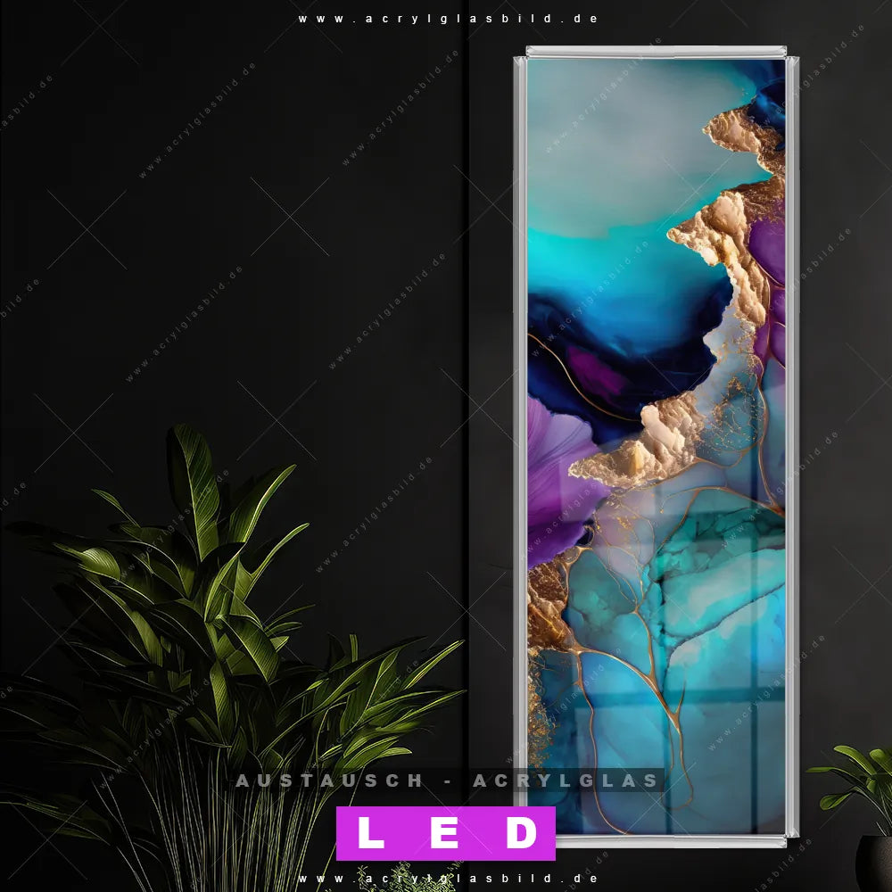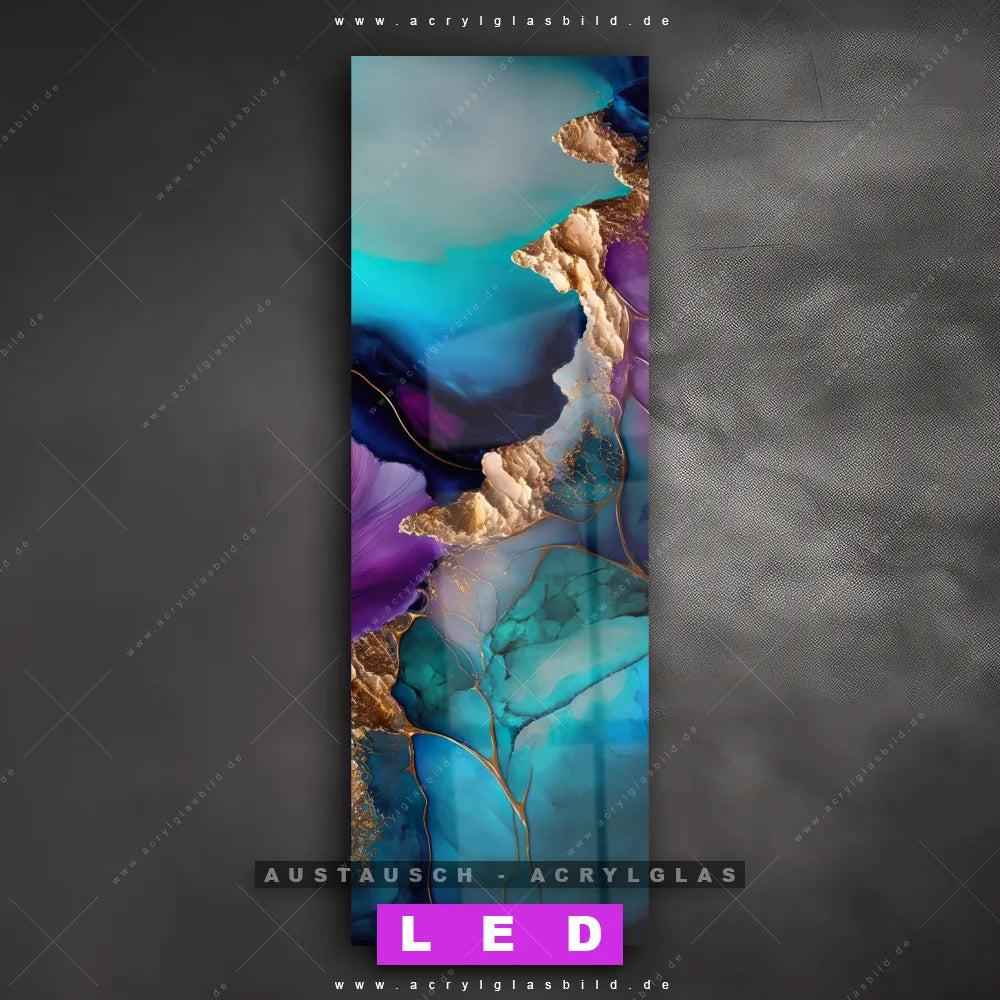 Begriffe wie Marmor, Flüssigkeit, Acryl, flüssig, Farbe, Marmorierung, Tinte, Fluid Art haben dich auf der Suche nach deinem neuen Austausch-Acrylglasbild inspiriert? Dann sollte das Wechsel-Acrylglasbild Fluid Art in lila, blau & gold für dein bereits vorhandenes LED Acrylglasbild Canvalight® DIA den Weg zu dir finden.