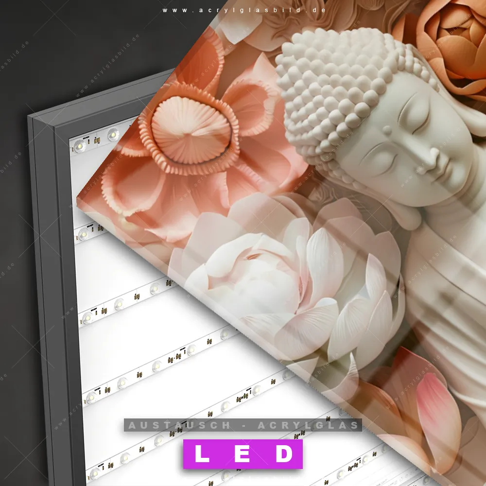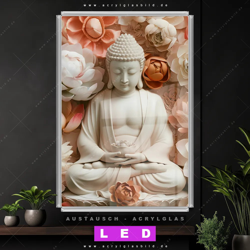 Wechsel-Acrylglas Canvalight® DIA | Meditierender Buddha mit Blüten | Hochformat