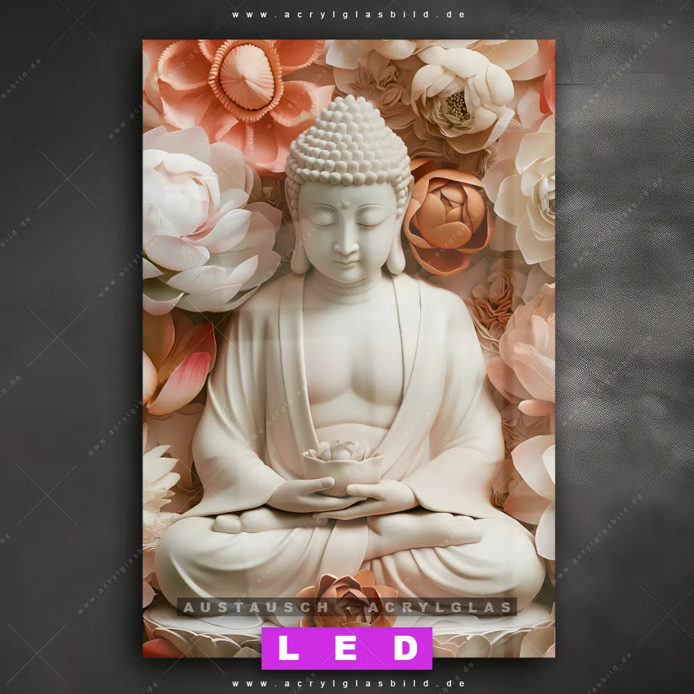 Begriffe wie Statue, Buddha, Meditation, Buddhismus, Religion, Blumen, Spirituell haben dich auf der Suche nach deinem neuen Austausch-Acrylglasbild inspiriert? Dann sollte das Wechsel-Acrylglasbild Buddha in Blumenpracht für dein bereits vorhandenes LED Acrylglasbild Canvalight® DIA den Weg zu dir finden.