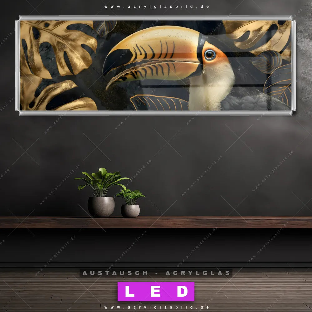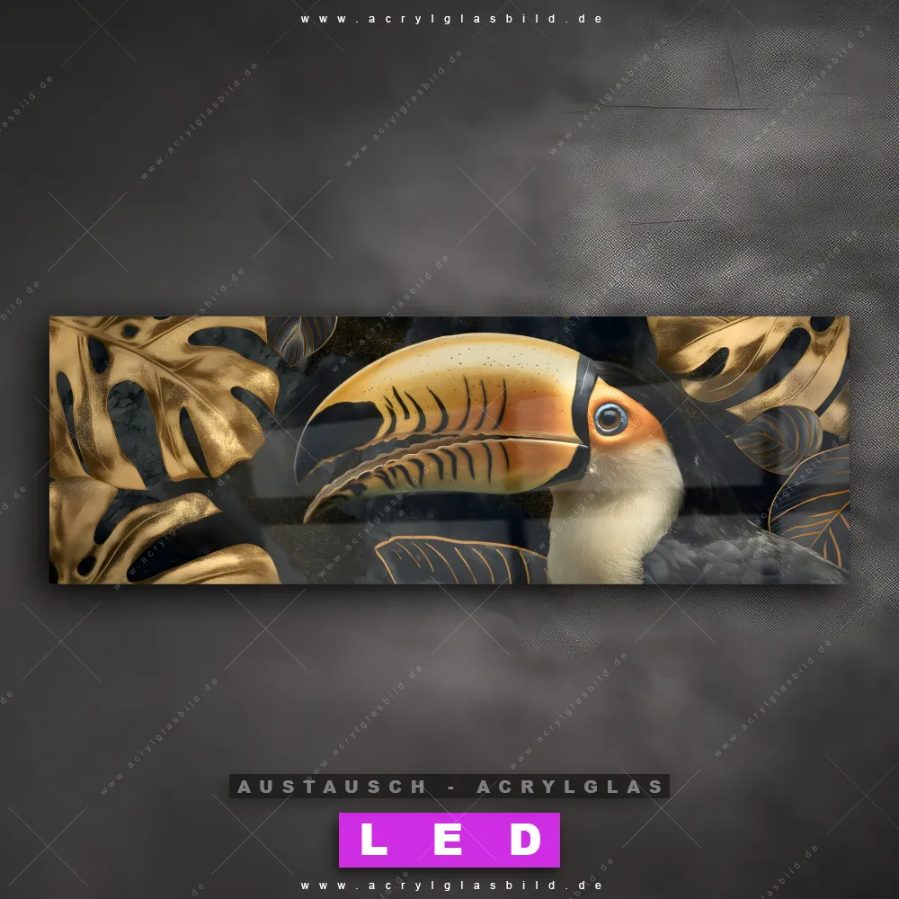 Wechsel-Acrylglas Canvalight® DIA | Monstera und Tukan Gold | Panorama